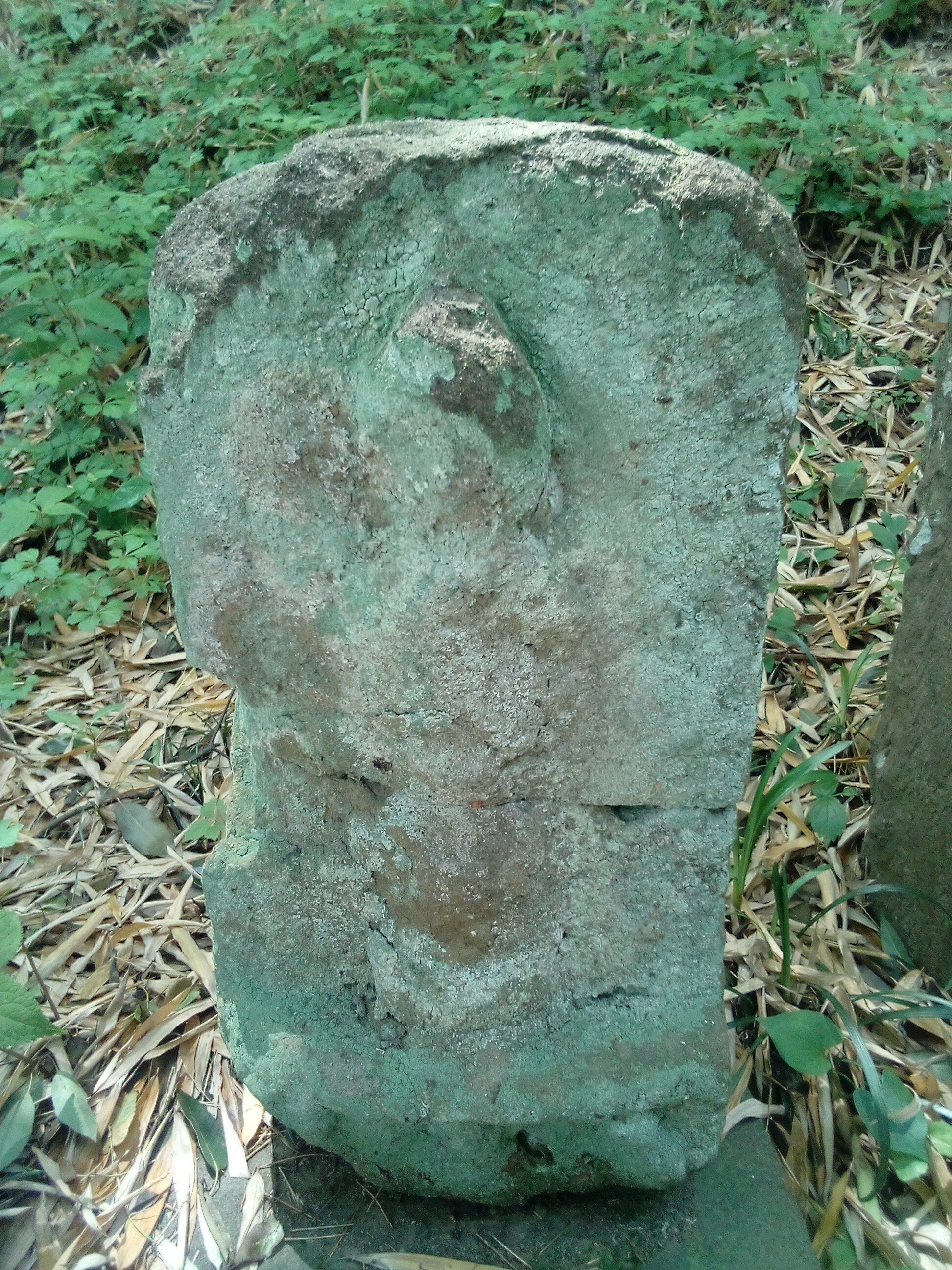 備考:『横浜市文化財調査報告書 第21輯の1 緑区石造物調査報告書(一)』 p.56では、「基底部に三猿かとみえる浮彫りがあって、もと青面金剛像を彫刻した庚申塔と思われる」