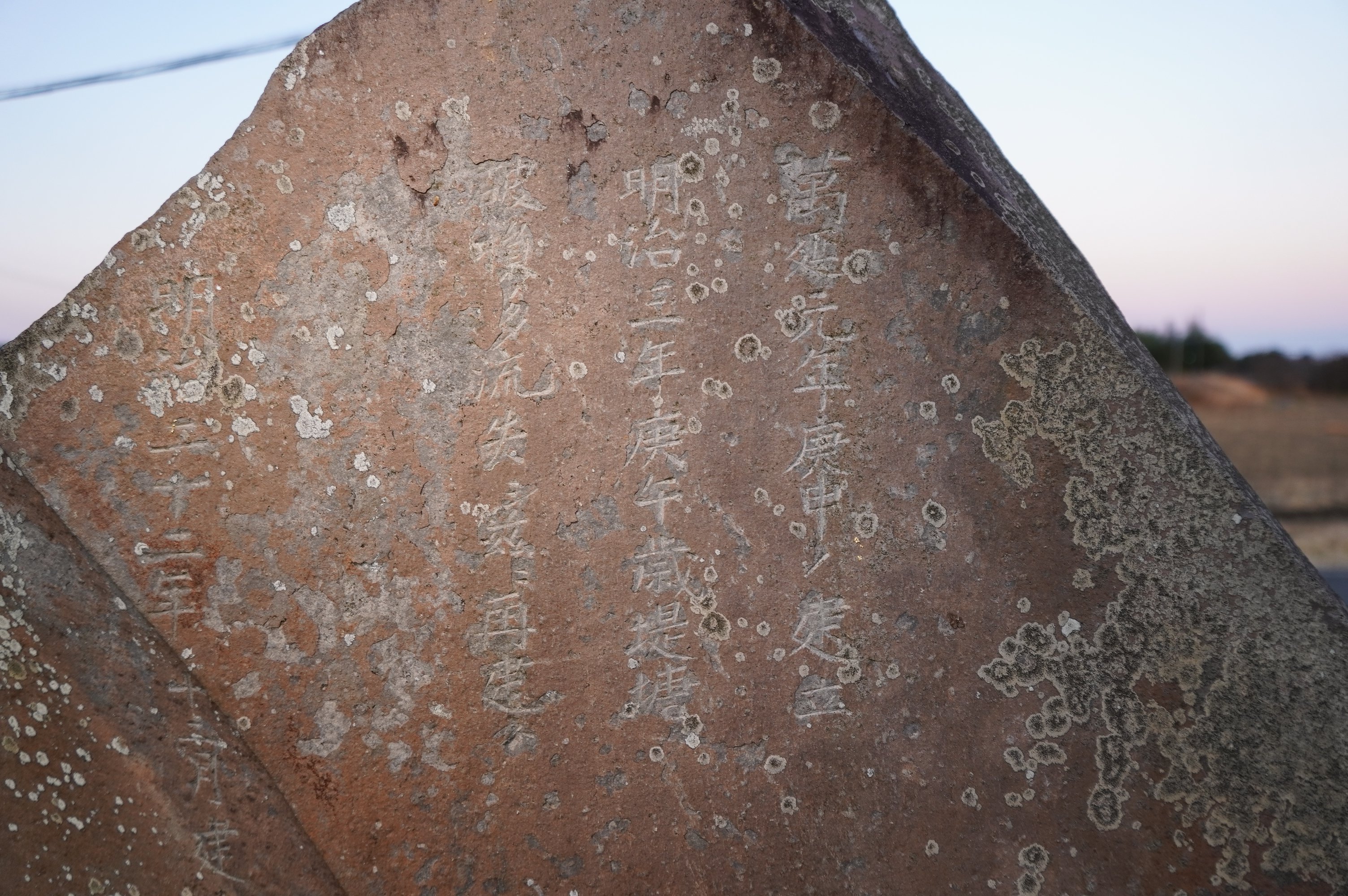 備考:「猿田彦大神 講中 / 万延元年庚申ノ建立 明治三年庚午堤塘破損□流失シ茲ニ再建ス」