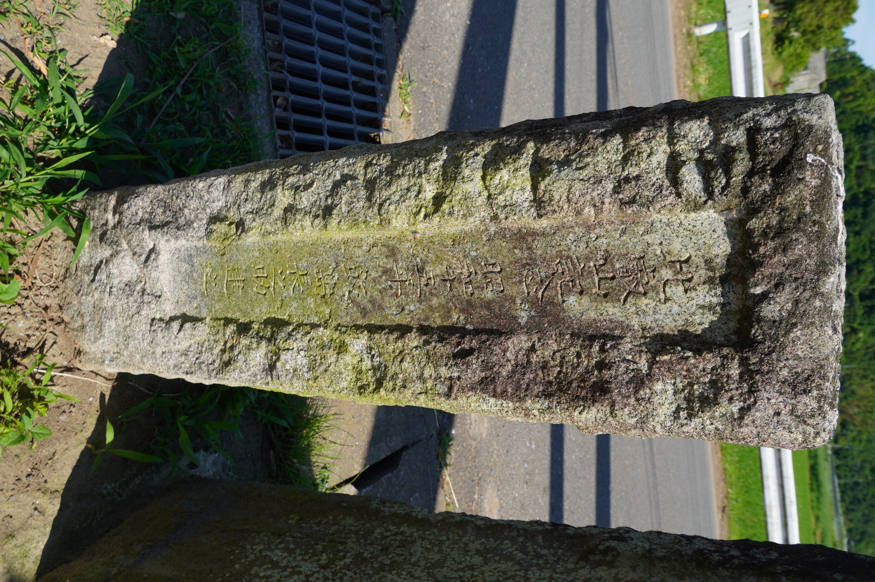 備考:「東 中和 古城 田部 小見川道 / 西 網松 永畑 / 南 仁良 山倉 新田 松崎道 / 比叡山記念 飯島長之助建之」