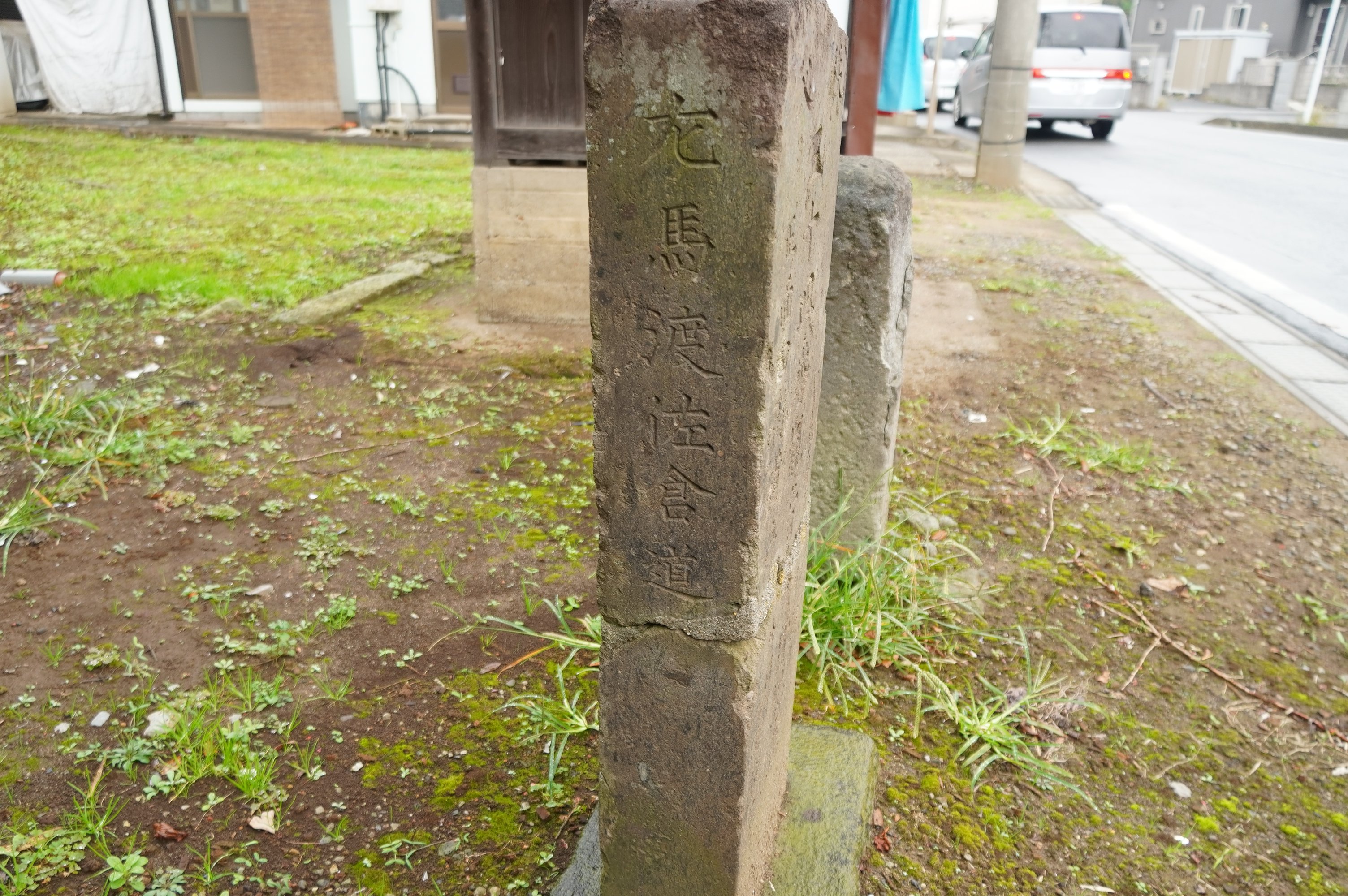 備考:「秩父三十四番観音参拝記念 先導者(人名3) 外同行参拾六名 正面四街道みち / 右千葉道 / 左馬渡佐倉道」
