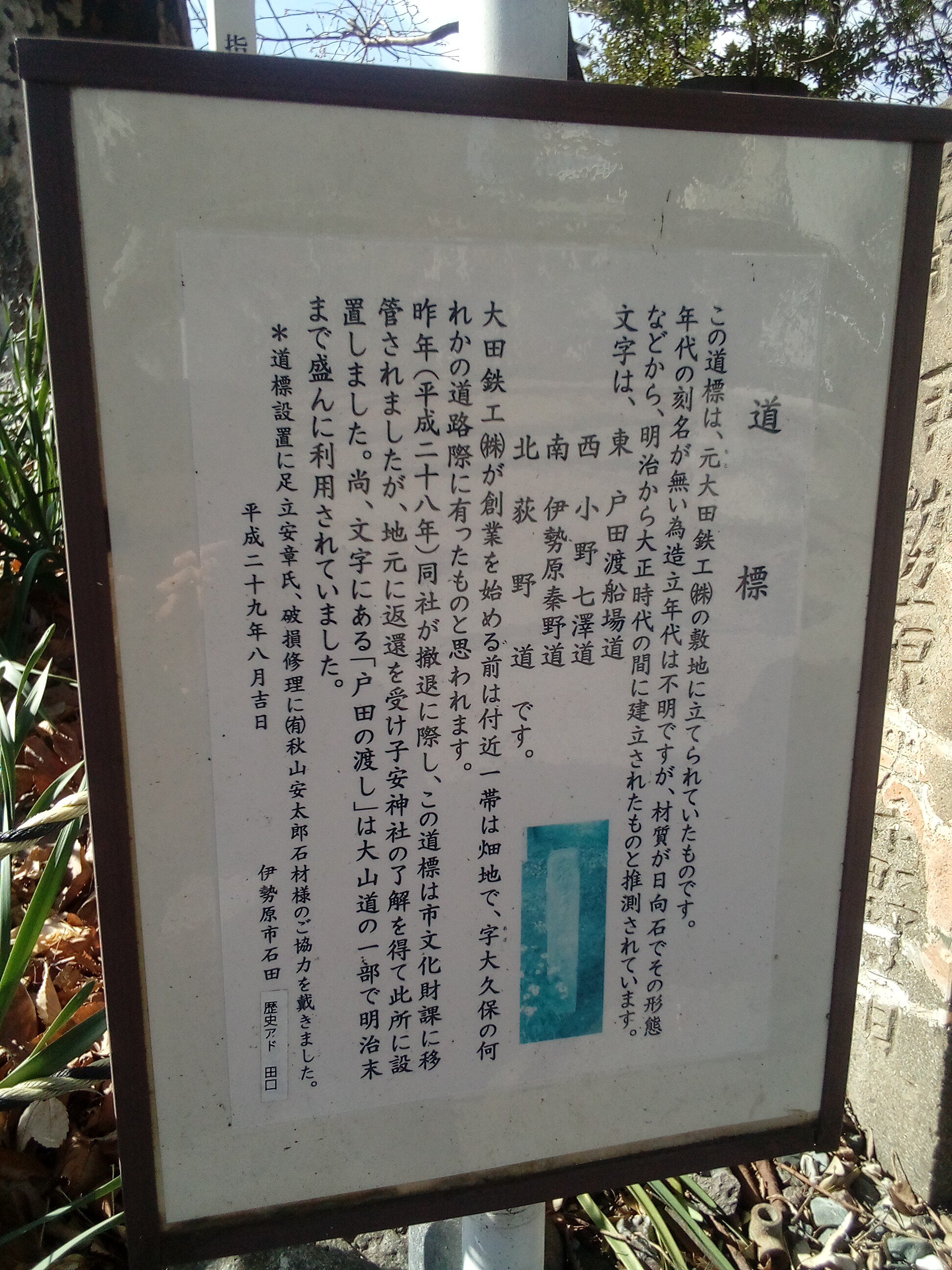 備考:「東 戸田渡船場道」 「西 小野七澤道」 「南 伊勢原秦野道」 「北 荻野道」