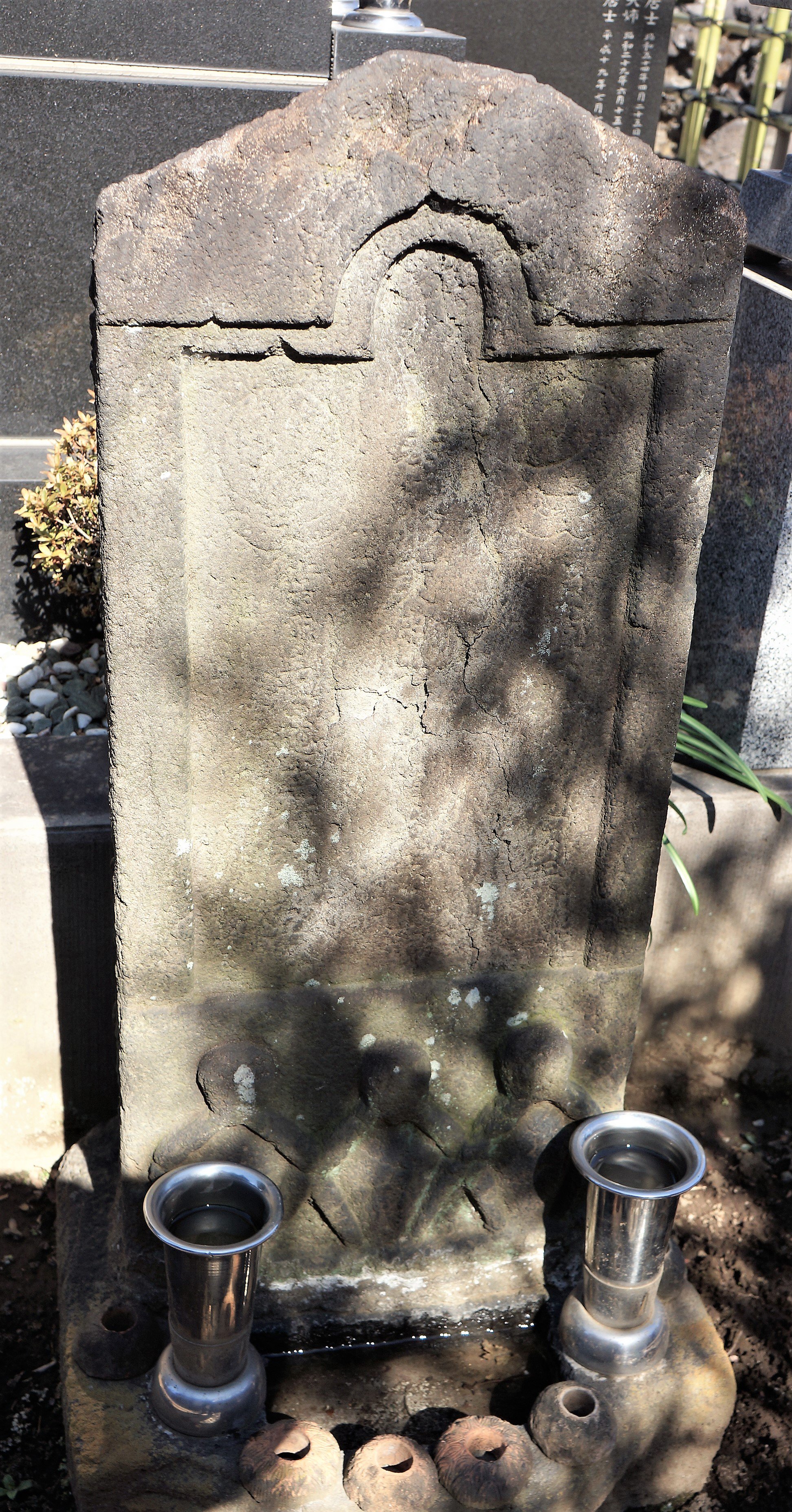 備考:板碑型 奉修庚申□祈願成就也 三猿