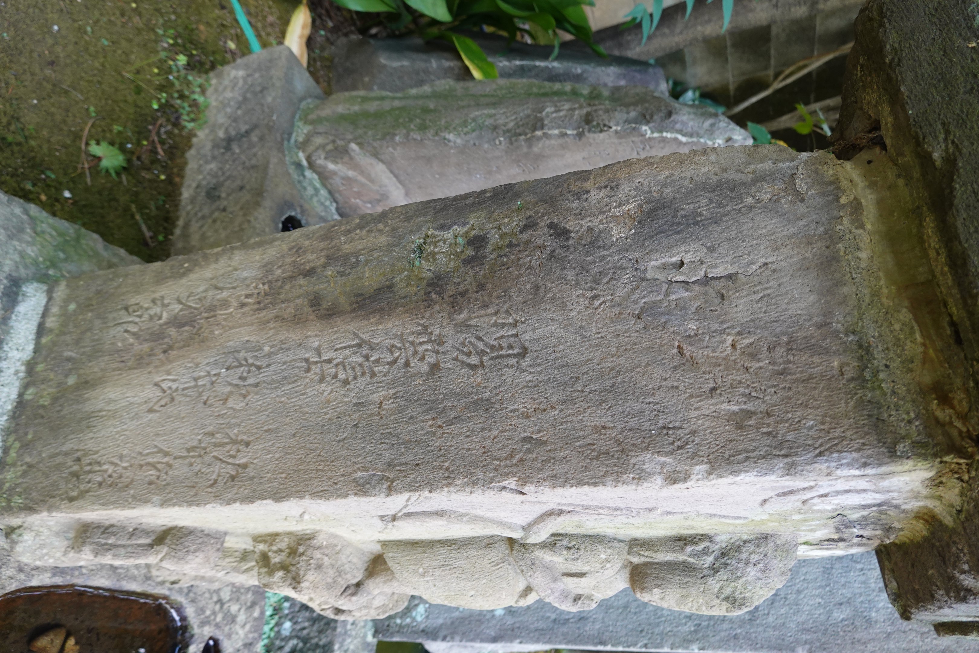 備考:笠付角柱型 足立源右衛門,秋本利右衛門,足立甚右衛門,大野藤八郎ら 合掌・六臂 日月、二鶏、三猿