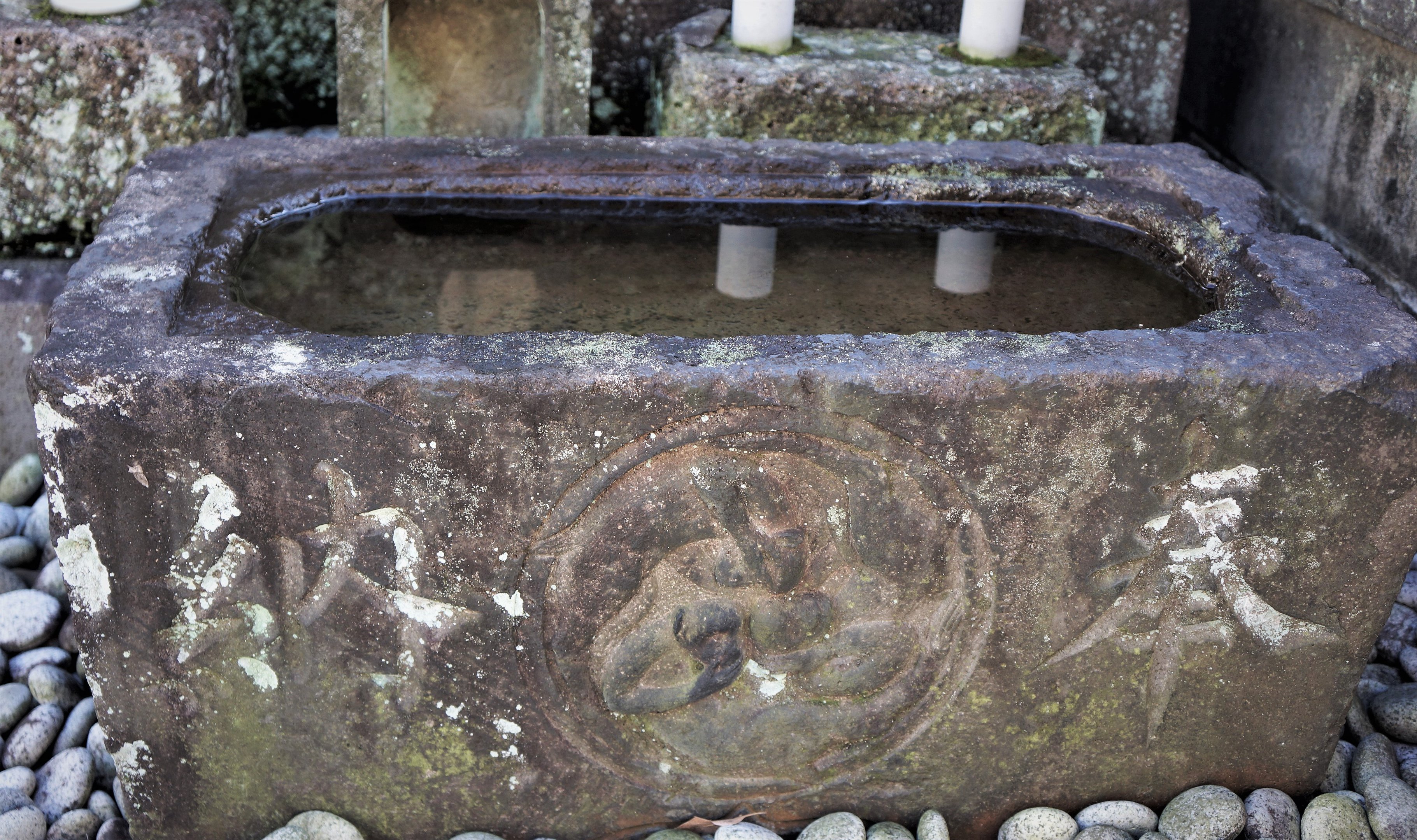 備考:手水鉢型 伝右衛門,久口衛門,徳太郎,喜右衛門ら 正面に三猿の図案 文政8年(1825)11月造立の庚申塔を再建