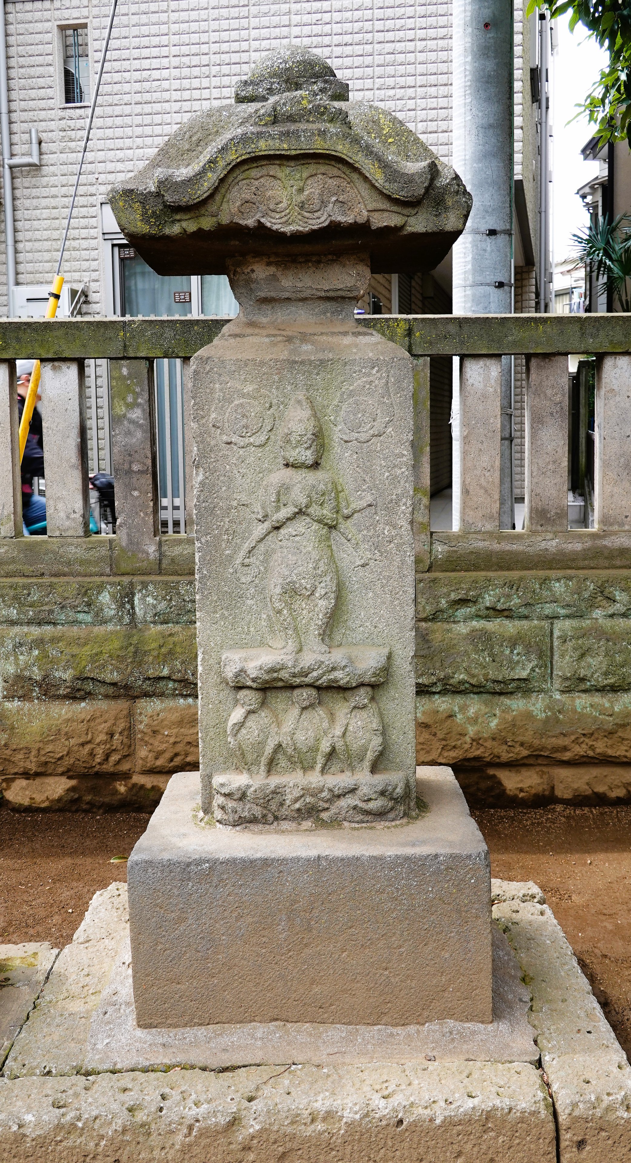 備考:笠付角柱型 山野上武右ヱ門,小林房太郎,小林清十郎ら 合掌六臂 日月、三猿 道標:右 大日み ち 左 祢里ま道