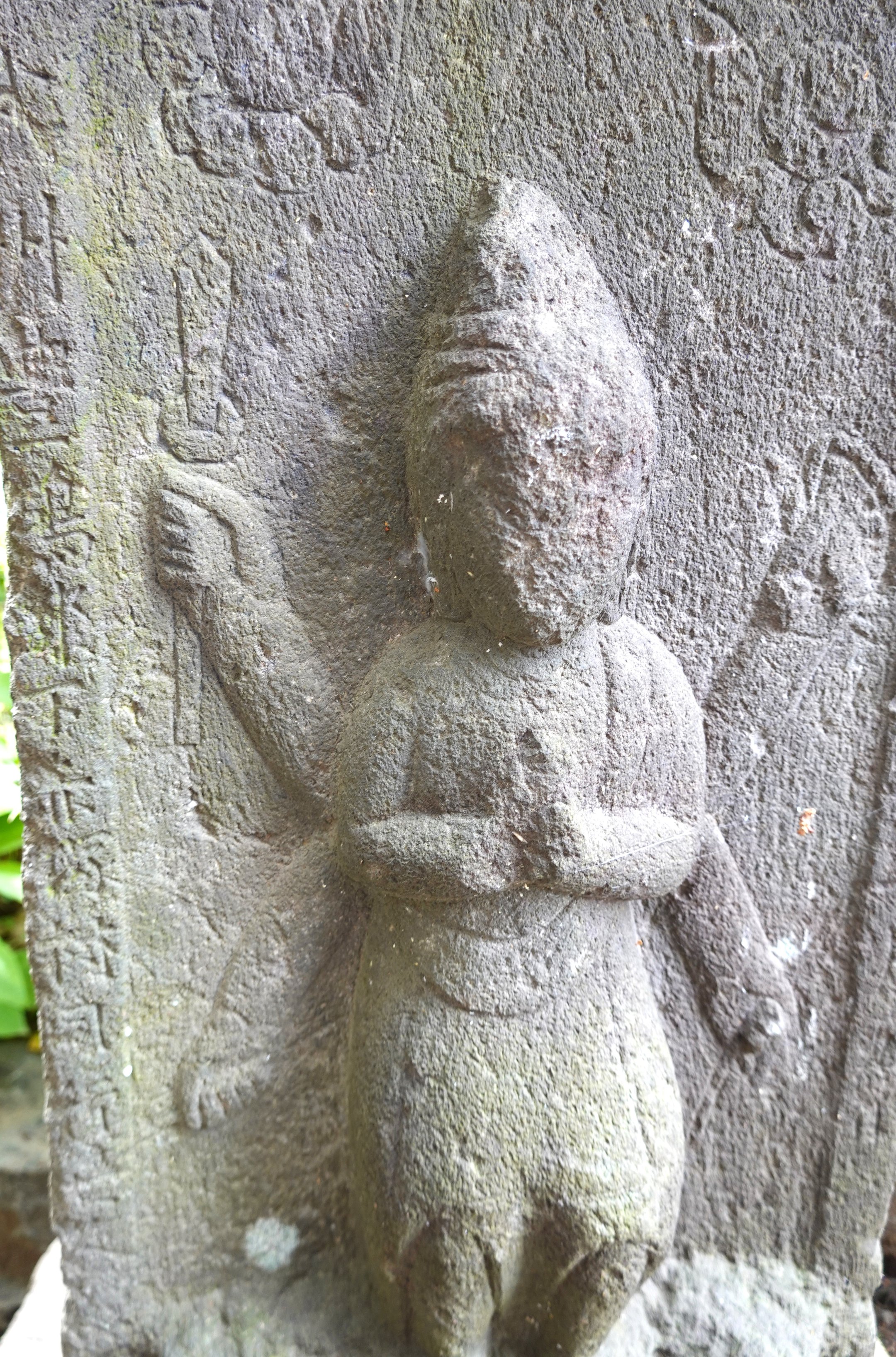 備考:笠付角柱型 武州豊嶋郡下赤塚村 同行七人 合掌六臂 日月、邪鬼、三猿