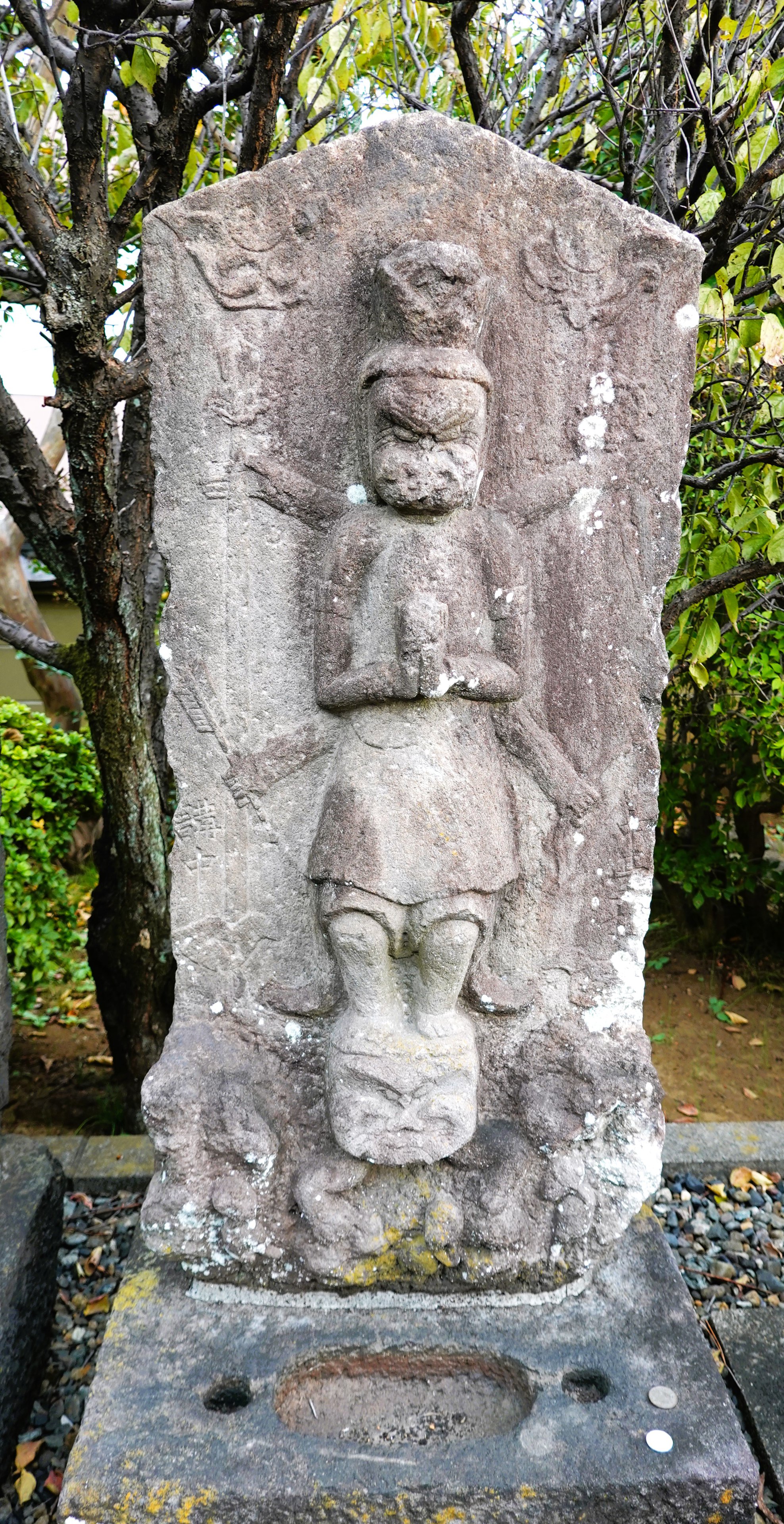 備考:駒型 奉建立青面金剛念願成就 飯田氏女りつ,同氏女つれ,久保氏女ゆき,飯田源七,久保八左衛門ら 合掌六臂 日月、邪鬼、二鶏、三猿