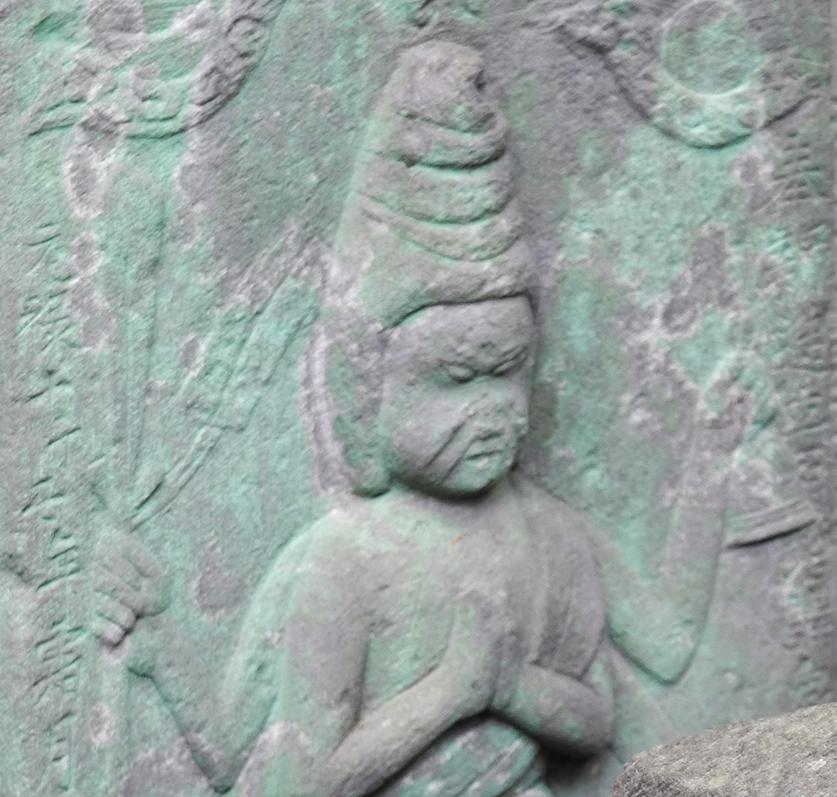 備考:笠付角柱型・現在「笠」はない 奉新造立石塔講衆二世安楽所 合掌六臂 日月、二鶏、邪鬼、三猿
