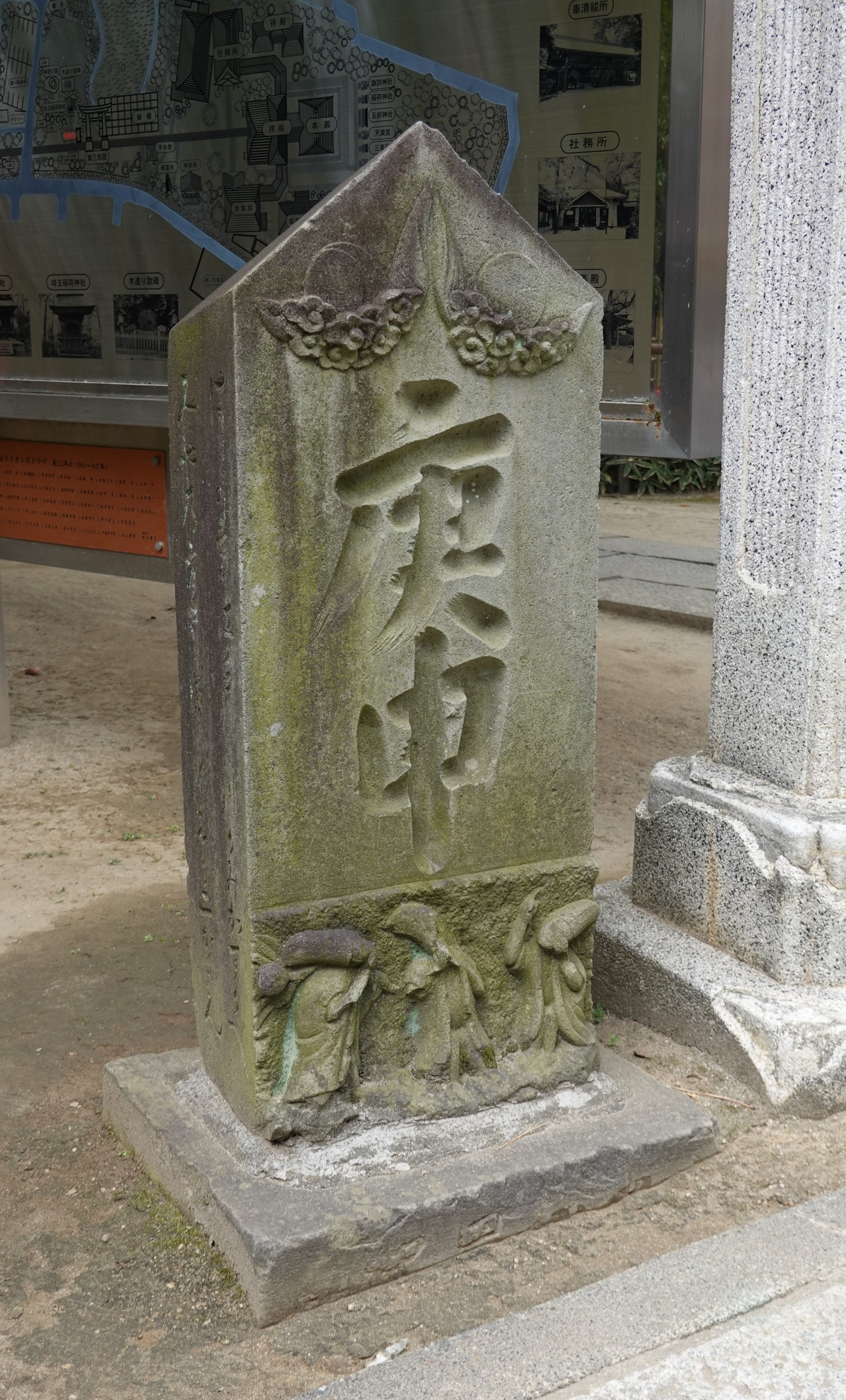 備考:駒型 「庚申」 番叟を舞う三猿 道標:はしの方江戸川かみかすかべ みや乃方さしま川志も二がうもん