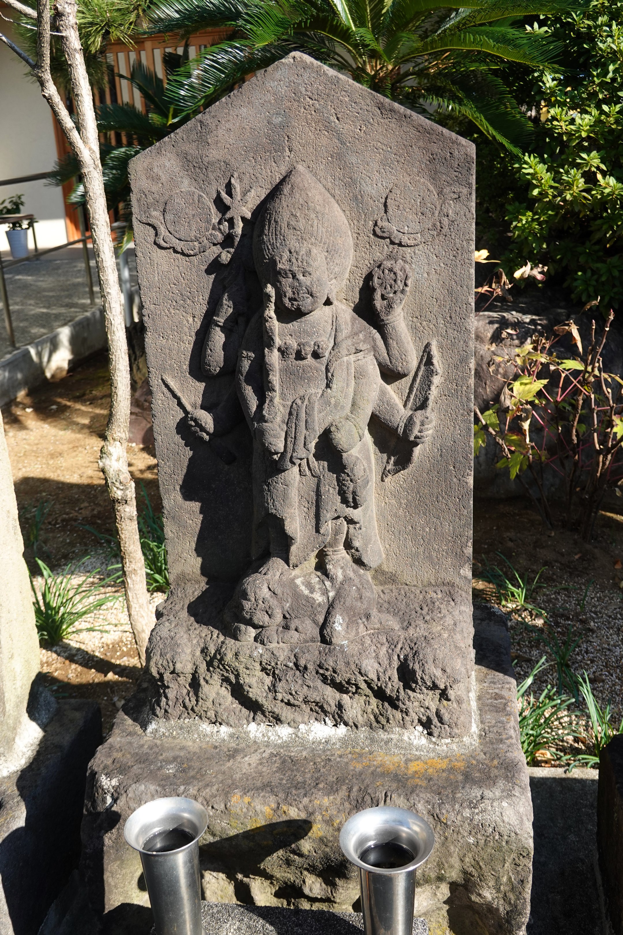 備考:駒型 青面金剛立像 六臂 日月・邪鬼・三猿・ショケラ