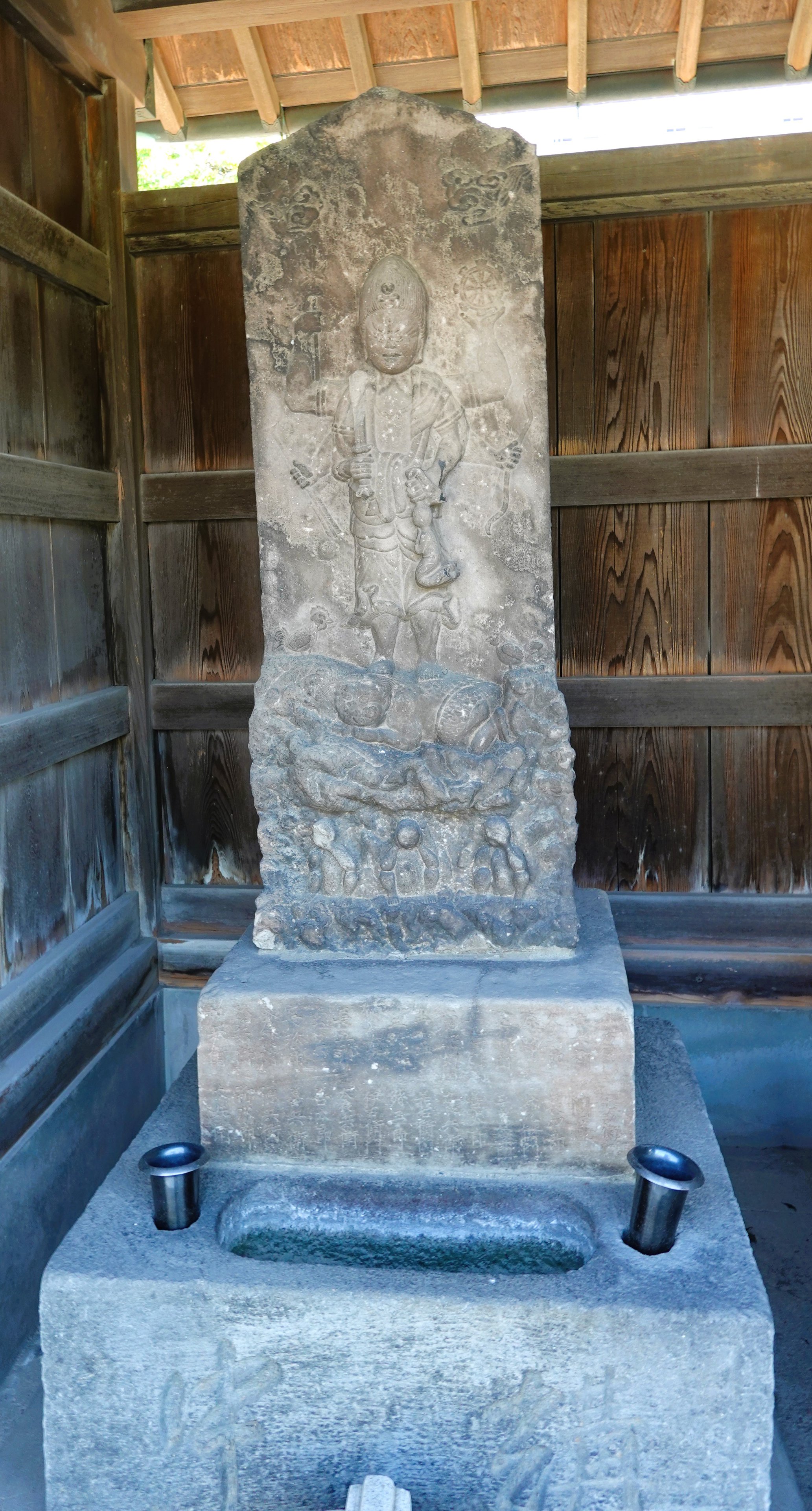 備考:駒型 青面金剛立像 六臂 日月・邪鬼・三猿・二鶏・ショケラ 奉供養庚申為二世安楽 法蓮寺七世到誉上人,宇田川伊左衛門,大塚喜右衛門ら