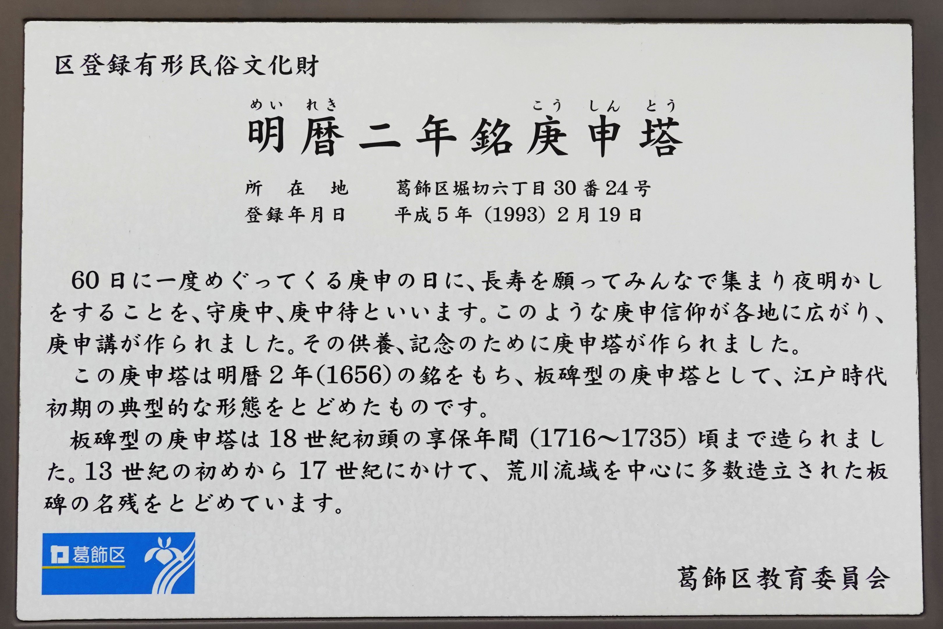 備考:板碑型 奉待庚申供養二世成就攸 武刕江戸田所町 小□□□左衛門 敬白 施主