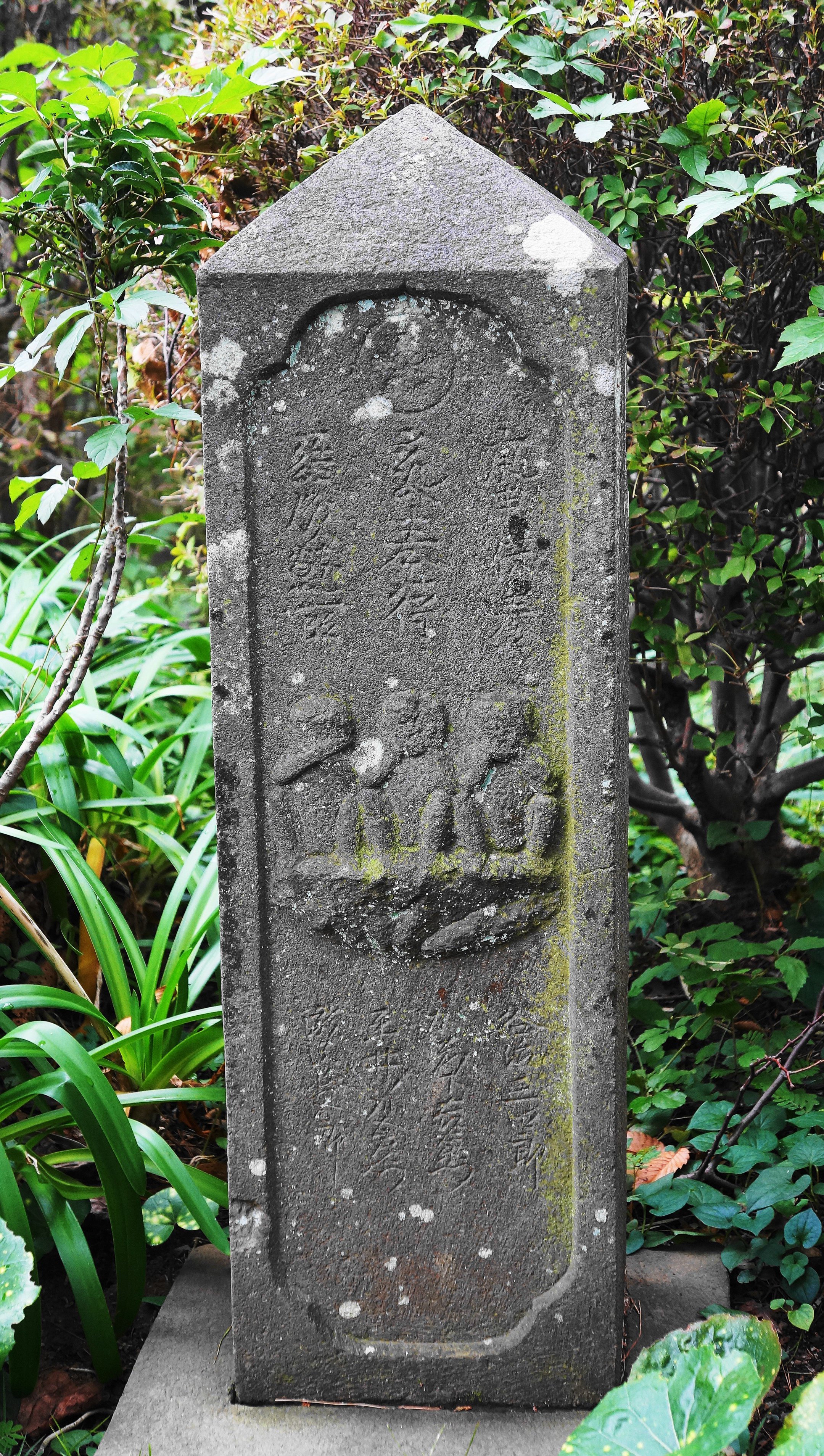 備考:角柱型 庚申供養待一結成就所 三猿
