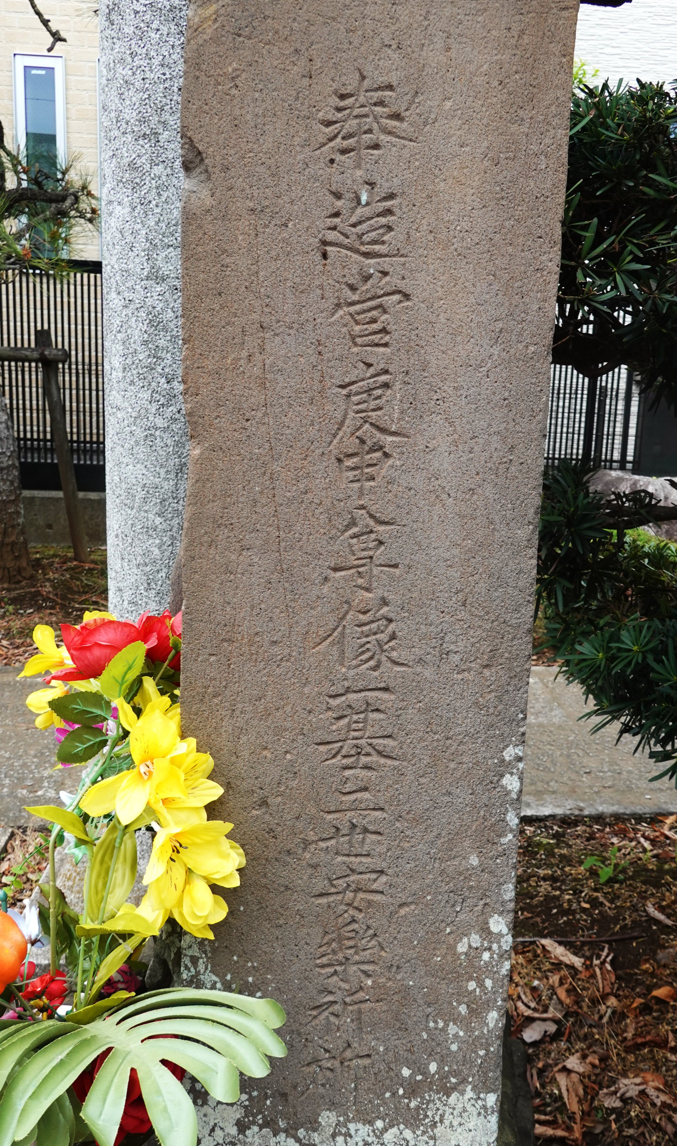 備考:笠付角柱型 青面金剛立像 合掌六臂 日月、邪鬼、三猿 奉造営庚申尊像一基二世安楽祈所