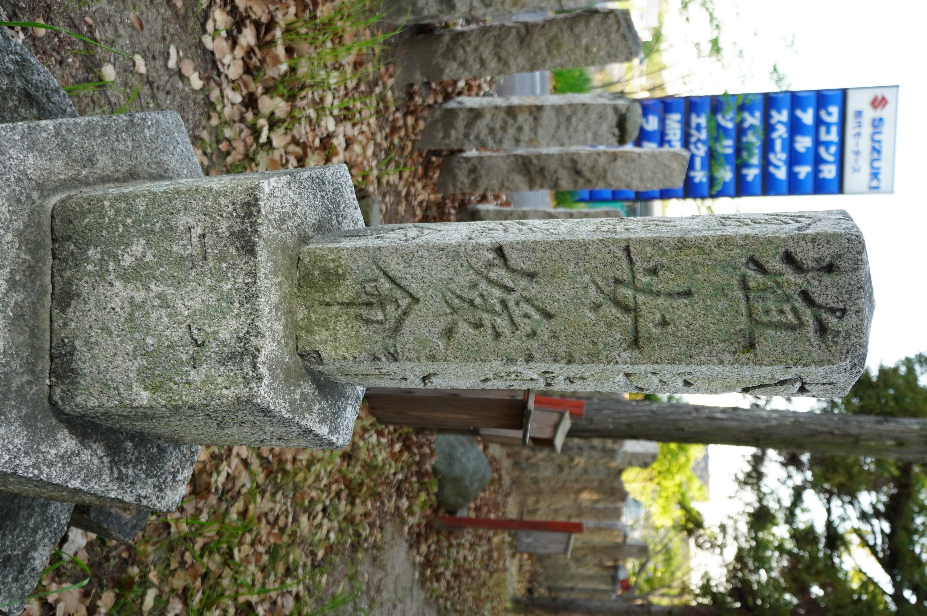 備考:「天照太神 / 少彦名命 / 倉稲魂命 / 埴安媛命 / 大己貴命 / (台座各面に数文字ずつ)氏子中 文政十二己丑八月日」