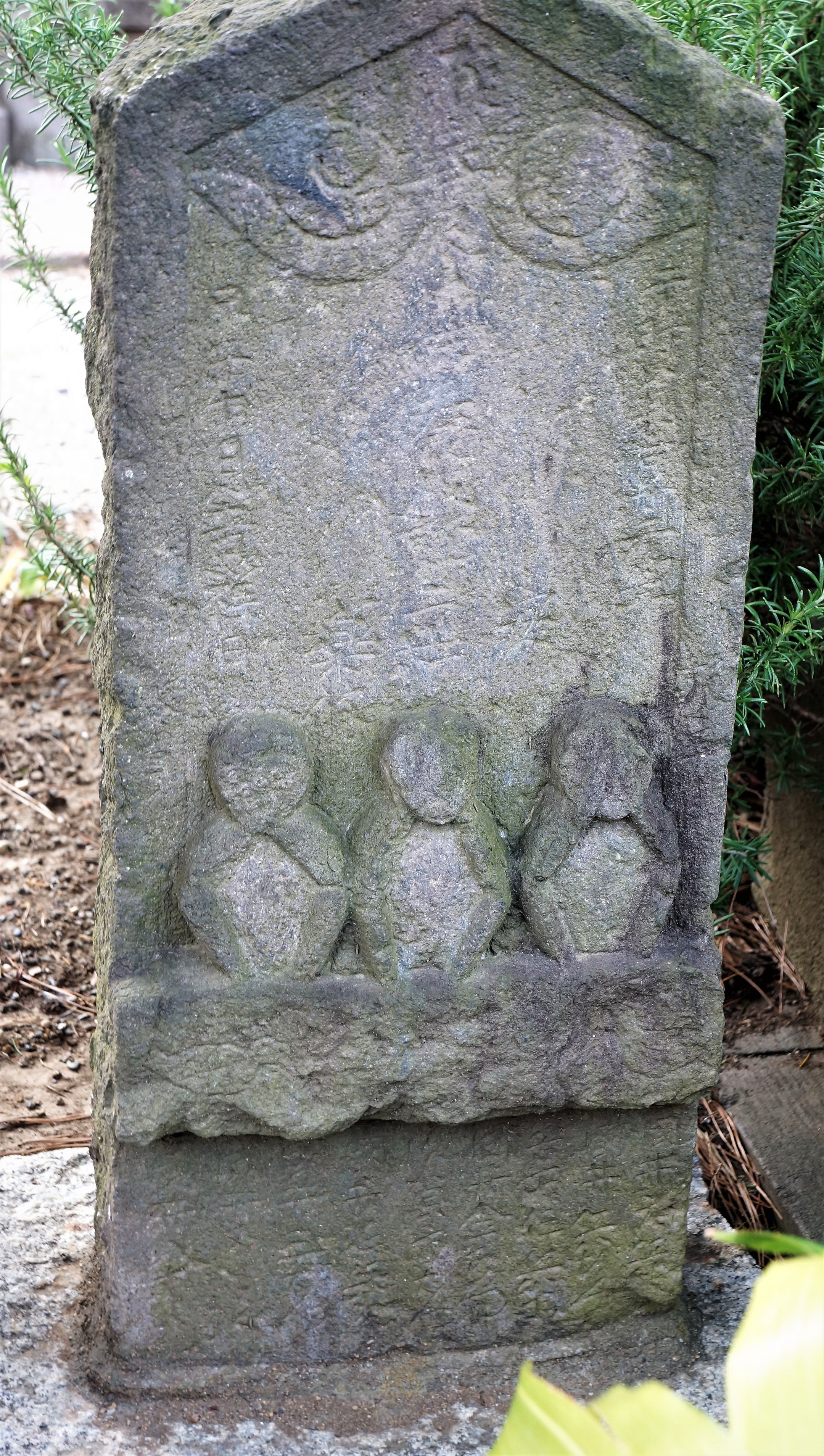 備考:駒型 三猿 奉庚申供養成就二世安楽攸,施主敬白 国井□兵衛,国井兵左エ門,谷古伊兵衛,国井金左エ門,須賀市左エ門,ら
