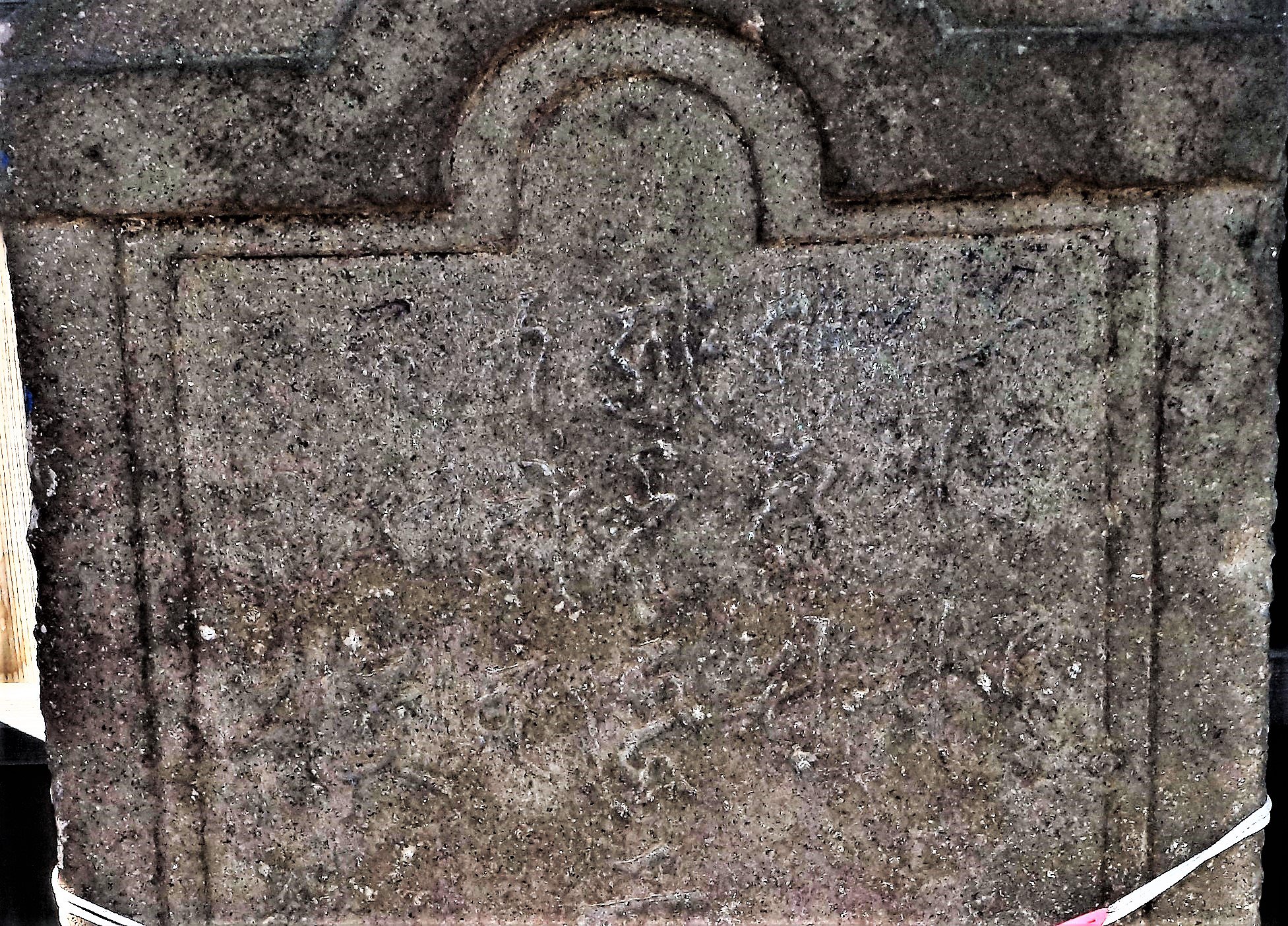 備考:板碑型 二十一仏種子 二世安楽,施主敬白 二郎佐衛門,八左衛門,弥左衛門,文右衛門,源右衛門,ら