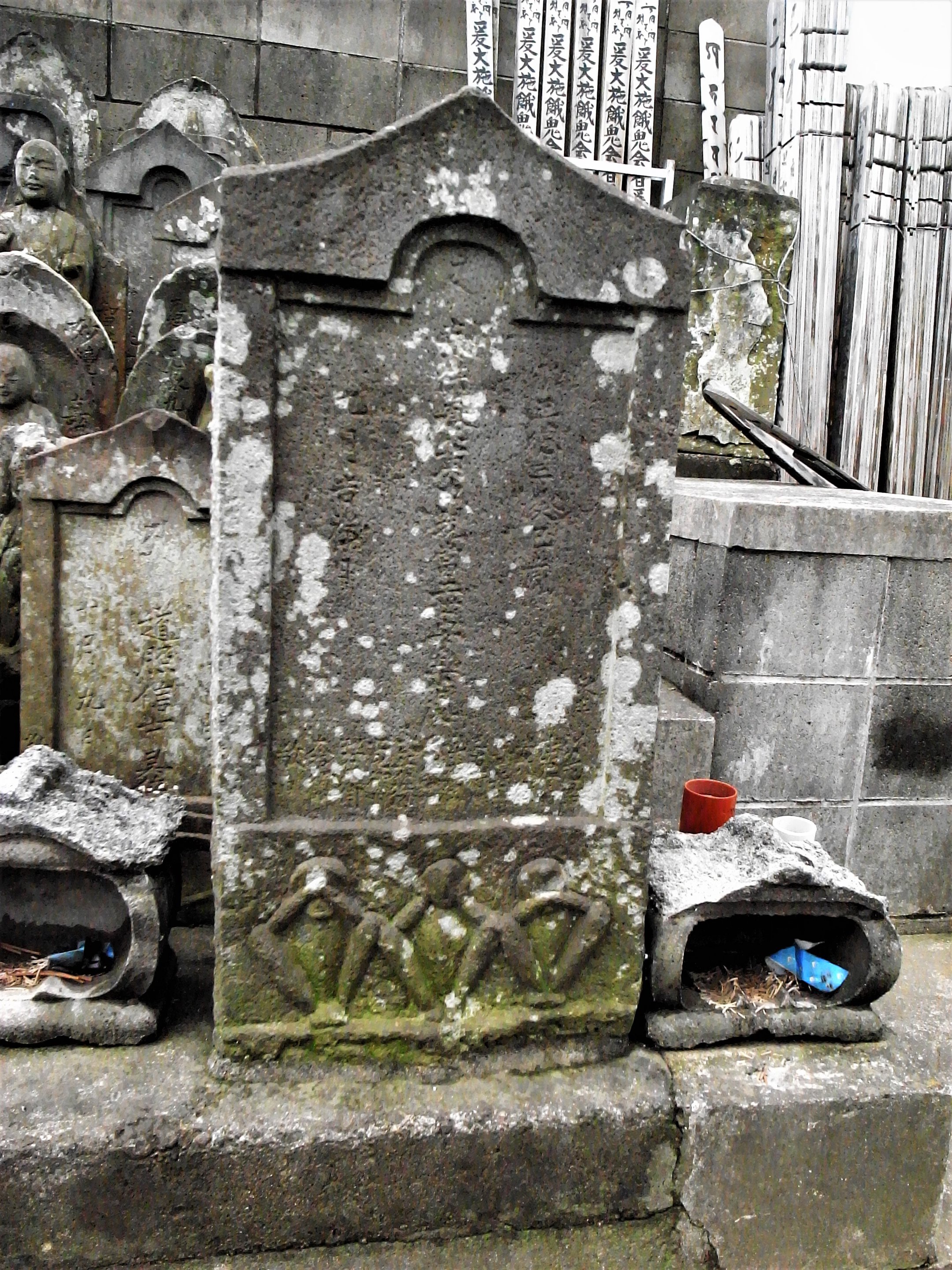 備考:板碑型 奉供養庚申現當二世安楽処 敬白 三猿 施主 次左衛門,庄右衛門,口兵衛,ら