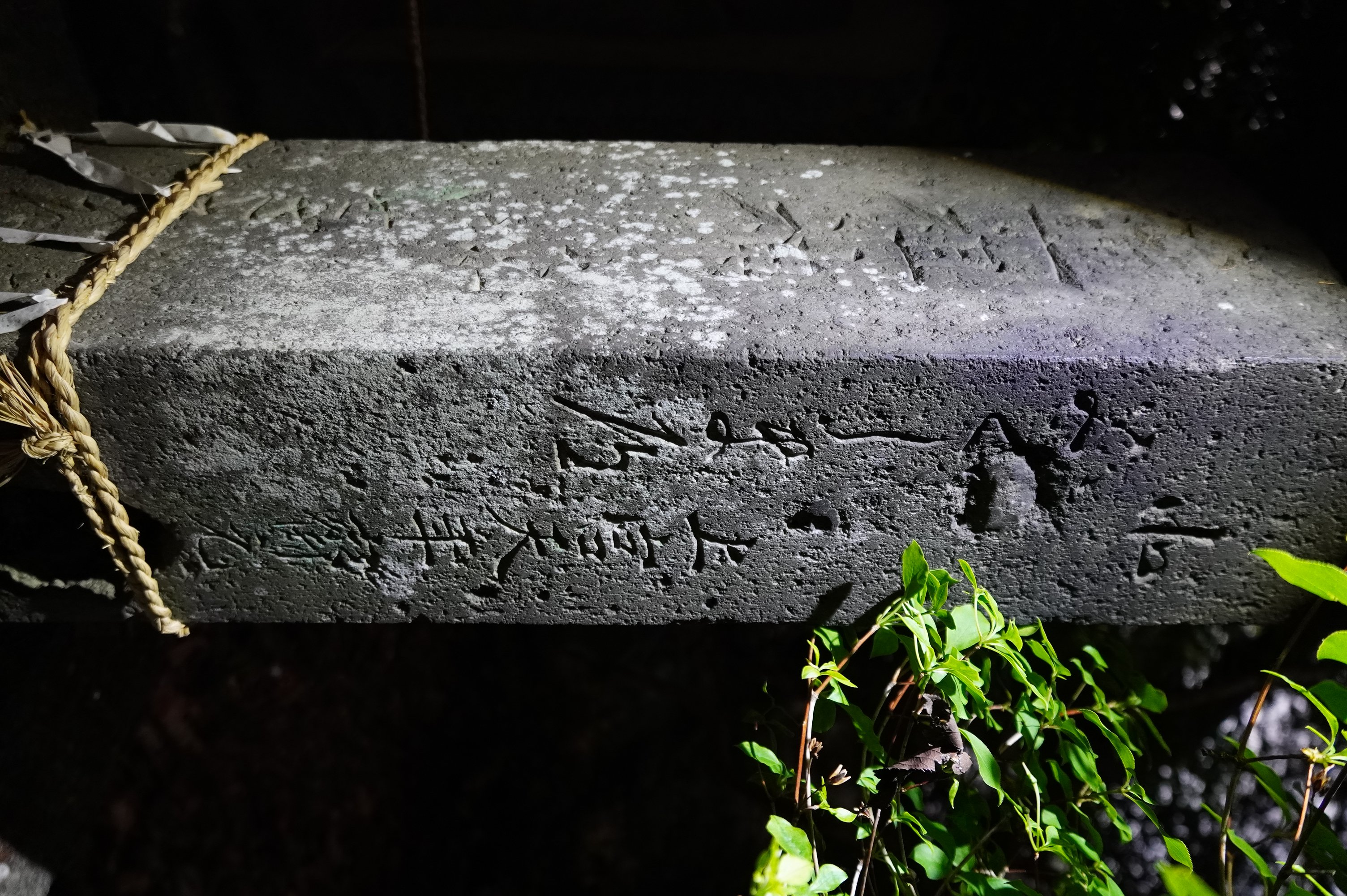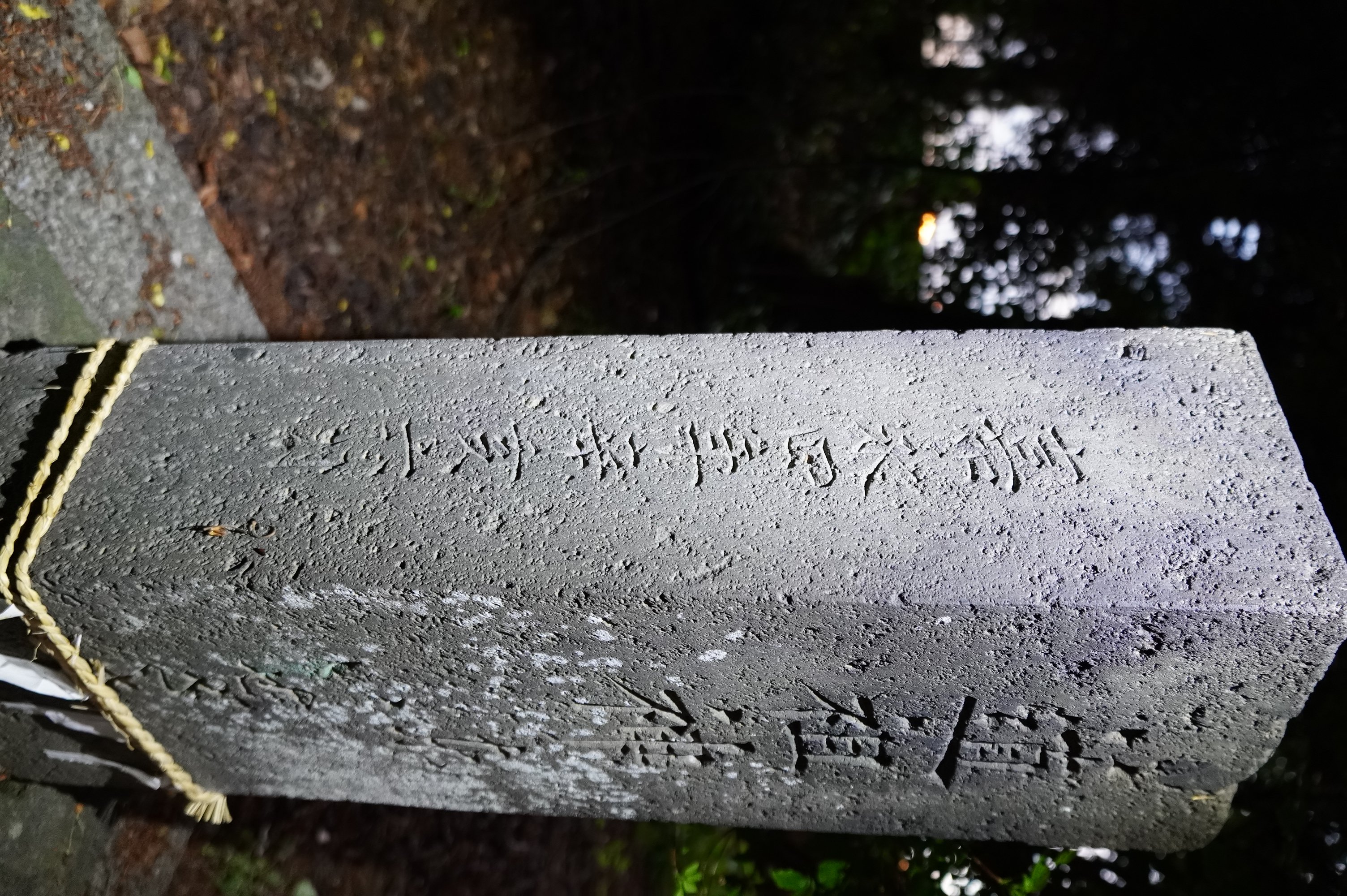 備考:「道祖神 東いせざき道 / 北 □くしま道(?) 上宮天年齋元(?)」