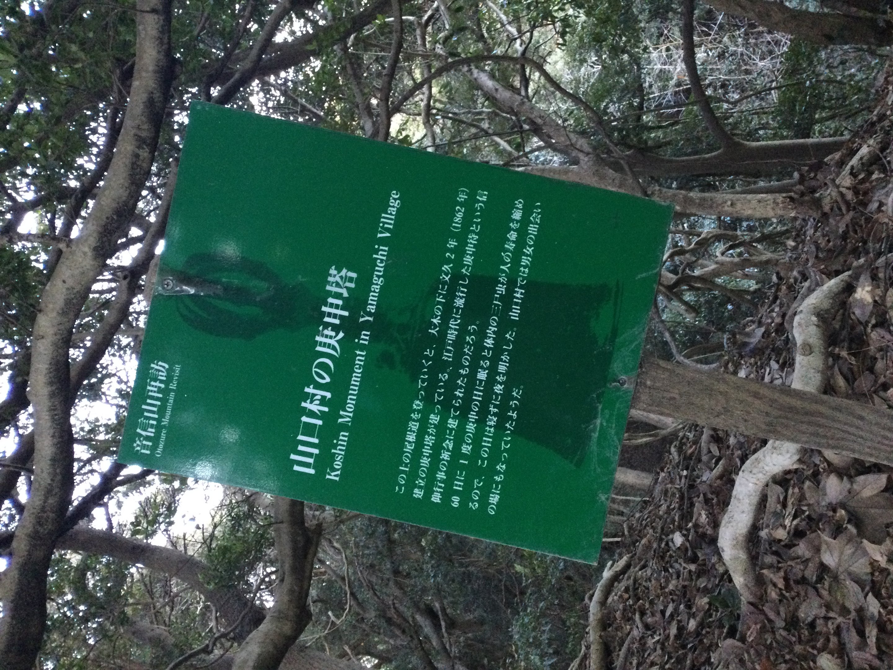 備考:山口林道から 35.3608021,140.1345028 付近で遊歩道に入り標識に従って尾根道を上った先にあるが、足場が悪いので注意を要する。
