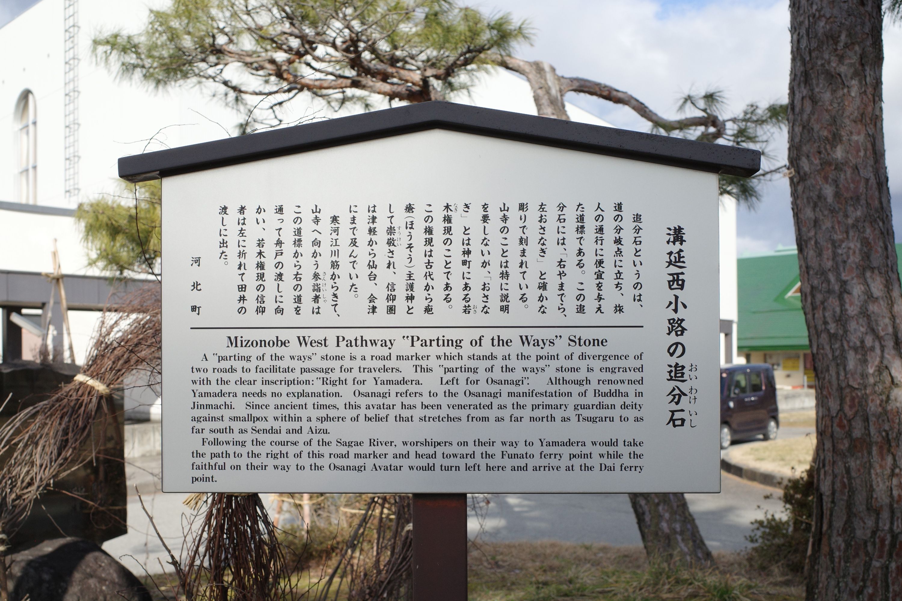 備考:右やまでら 左おさなぎ 溝延西小路 N38.3945 E140.3067付近より移転