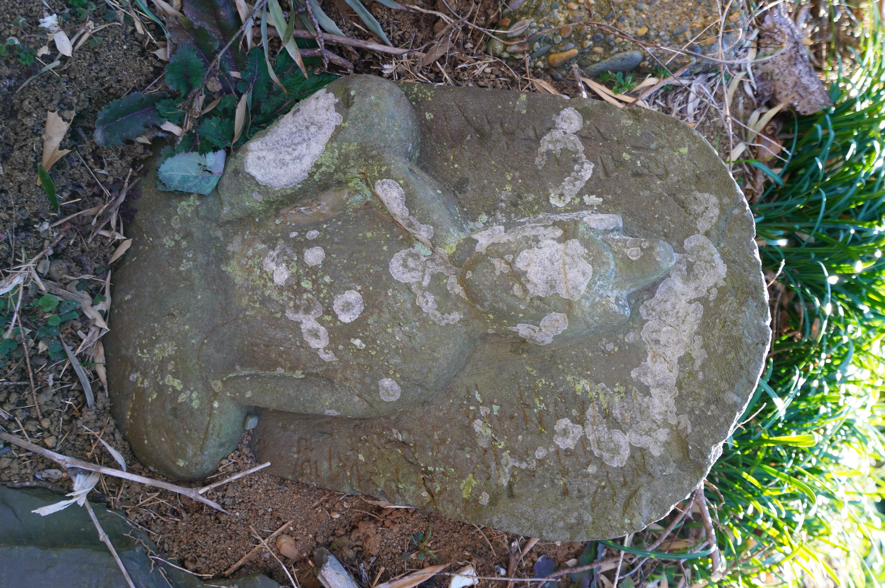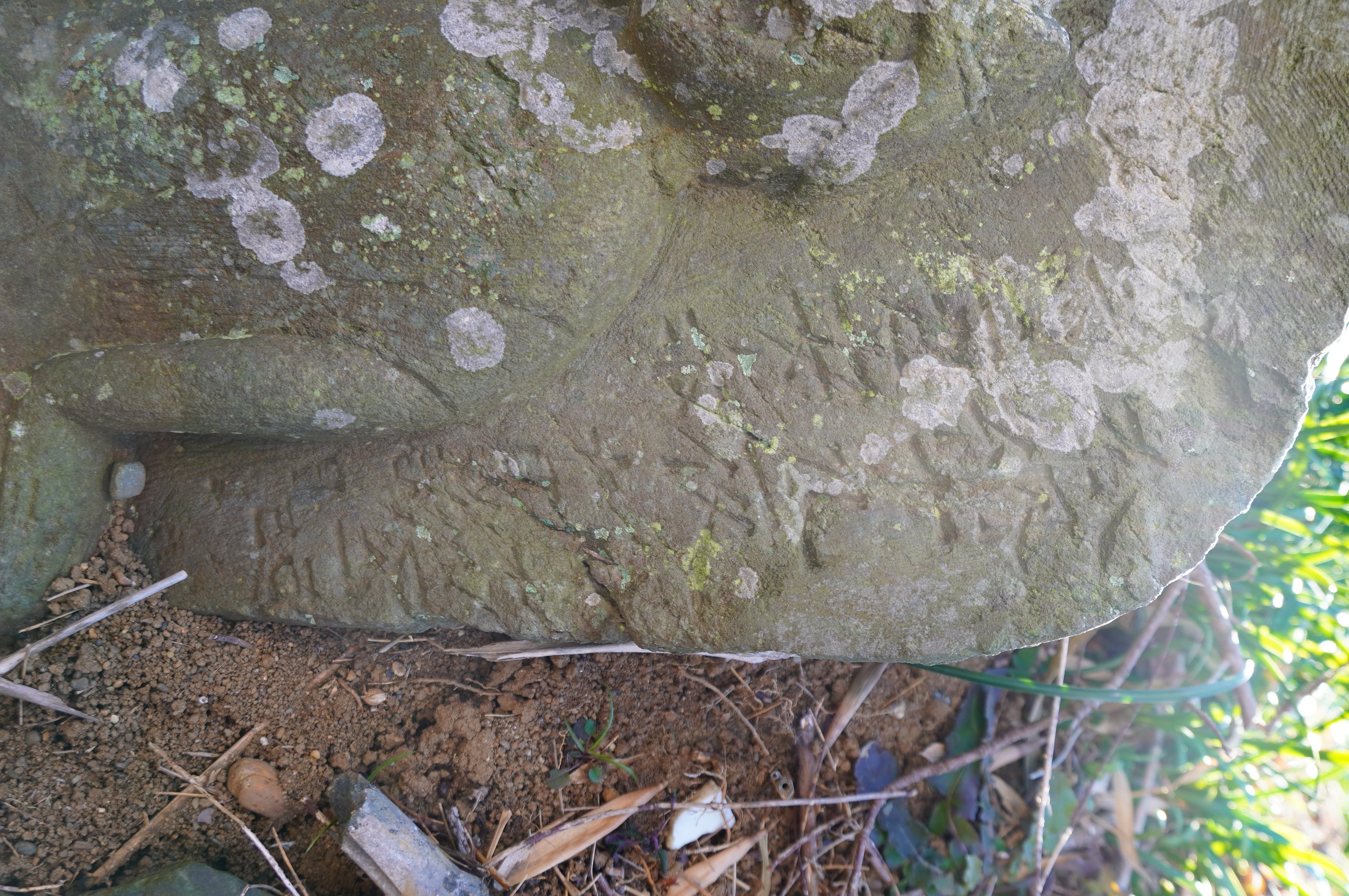備考:『東庄町石造文化財調査報告』未記載?「奉納十九夜為二世安楽攸? □□二己巳十月吉日 / 同行二十六人」。「二己巳」は元禄、寛延、明治のいずれかと思われるが、「寛」の足部分と「延」のえんにょう部らしい部分が見えるので寛延とした。