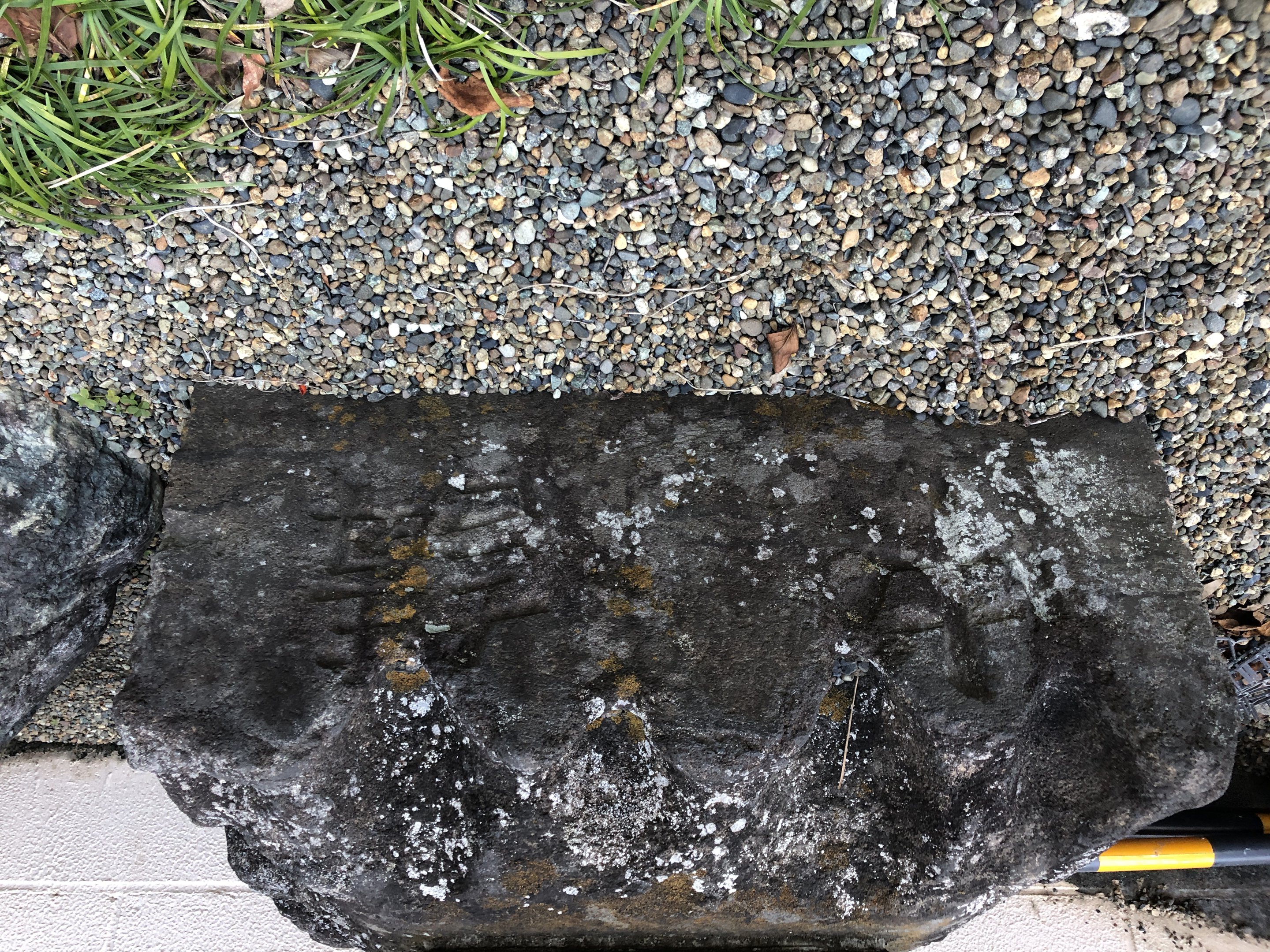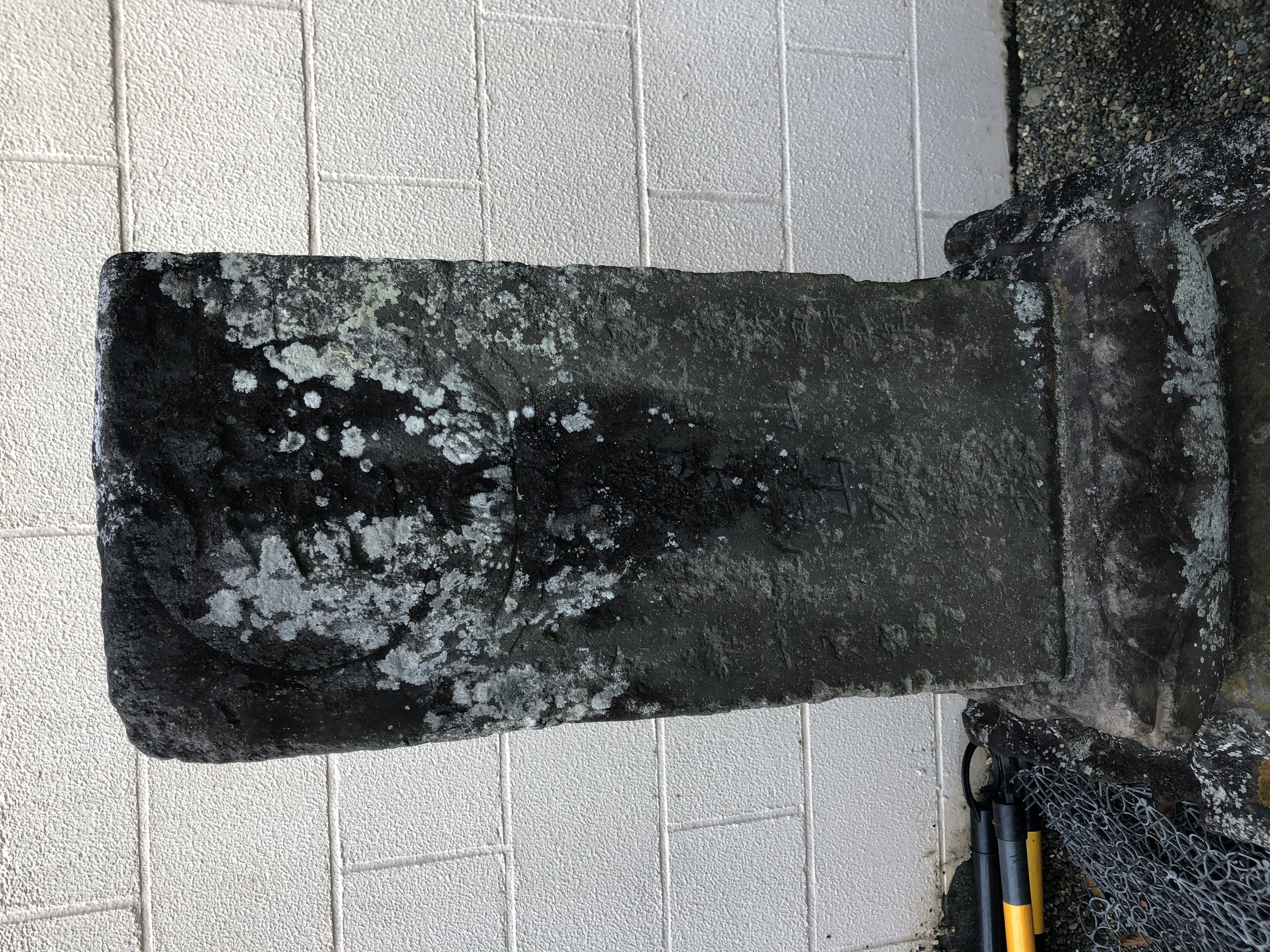 備考:正面:□(文)政四辛巳年 アーンク(剥離がひどくほとんど文字が多くが読めないが三山の名称、三山社の文字がかろうじて見える。)側面:羽黒山 講中 □□人、台座:講中、盃状穴複数、撮影:2022年12月29日