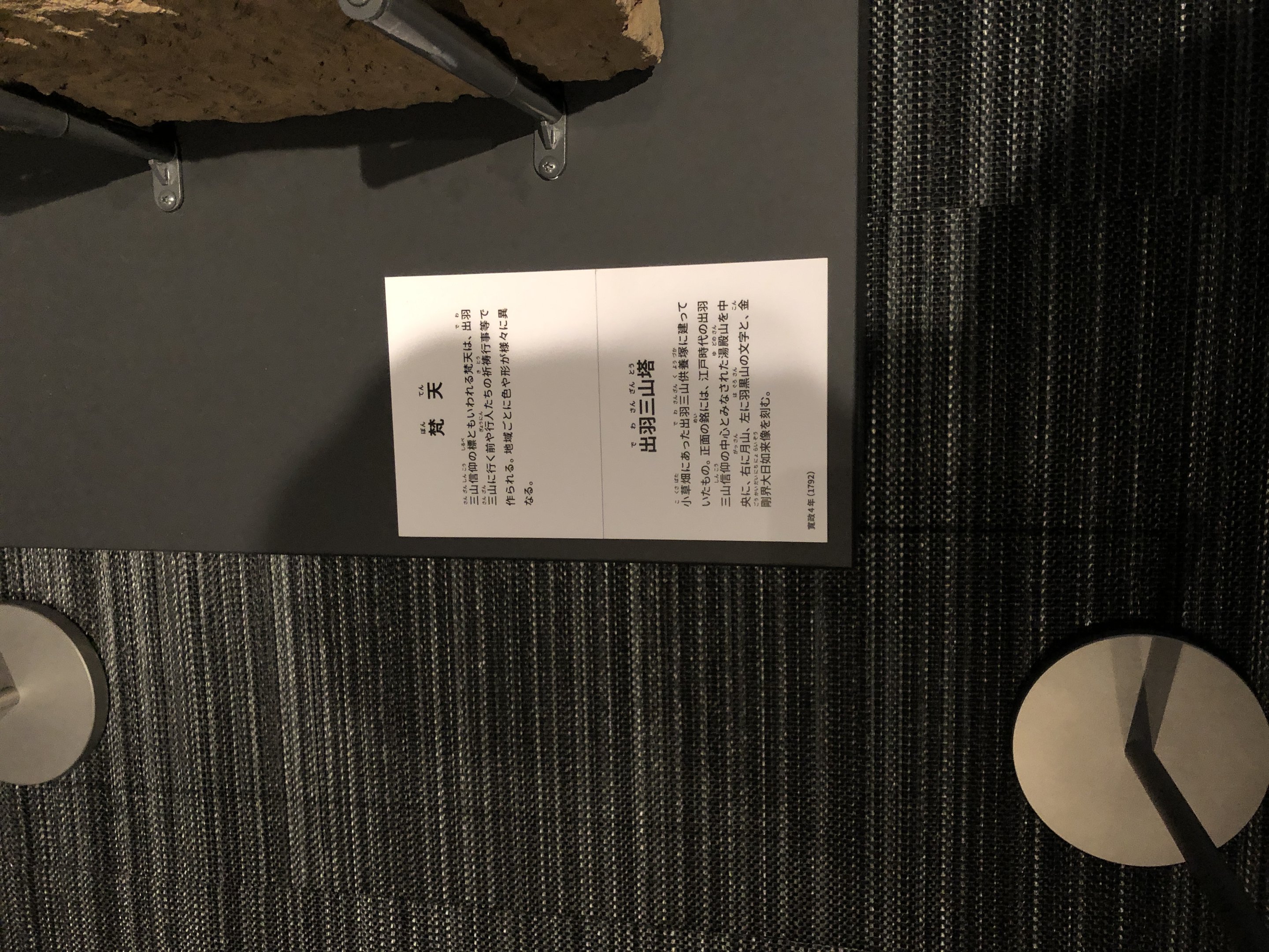 備考:案内板より市原市小草畑地区の出羽三山供養塚(消滅)より移築、梵天の再現展示とともに展示されているもの。