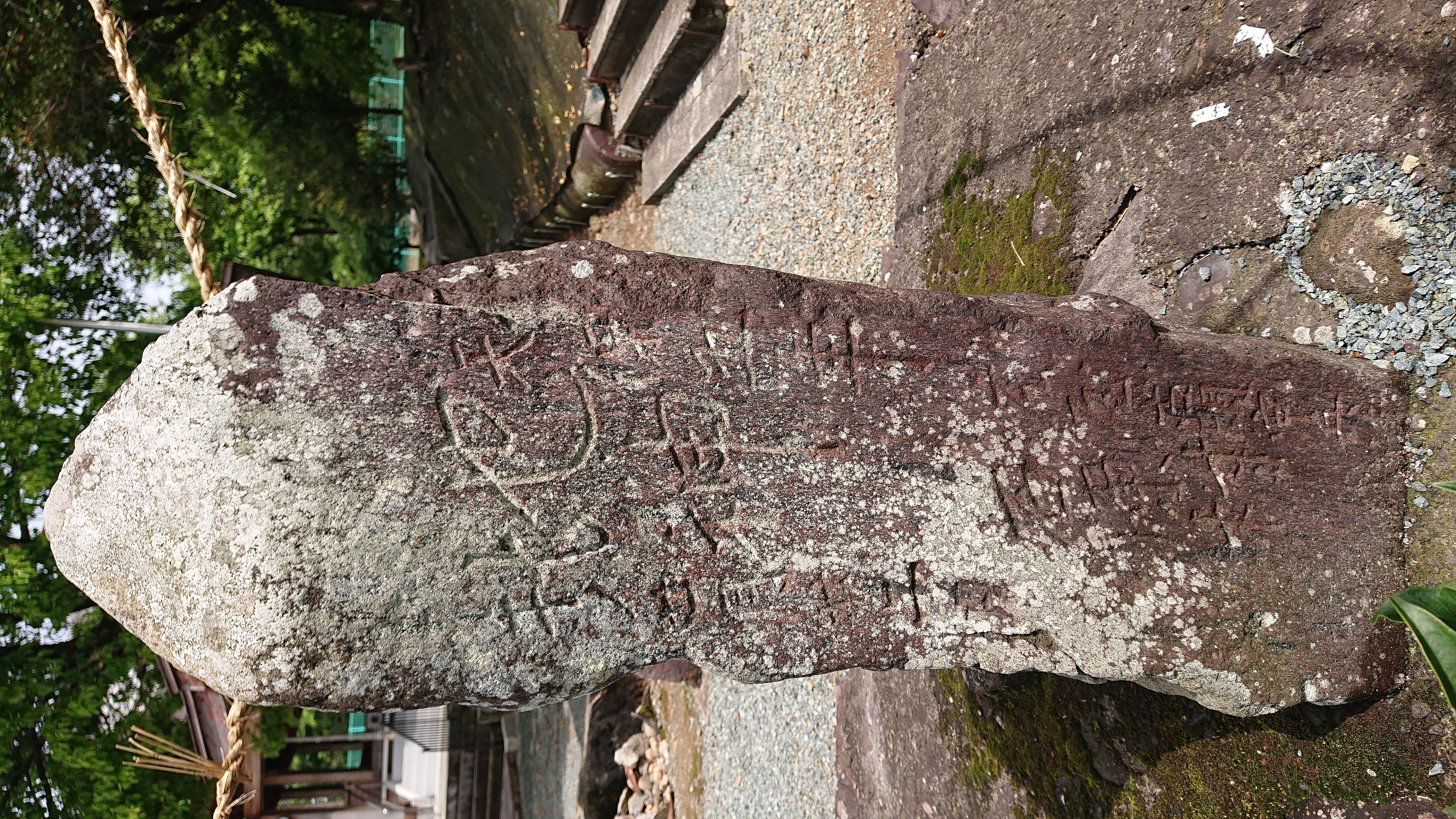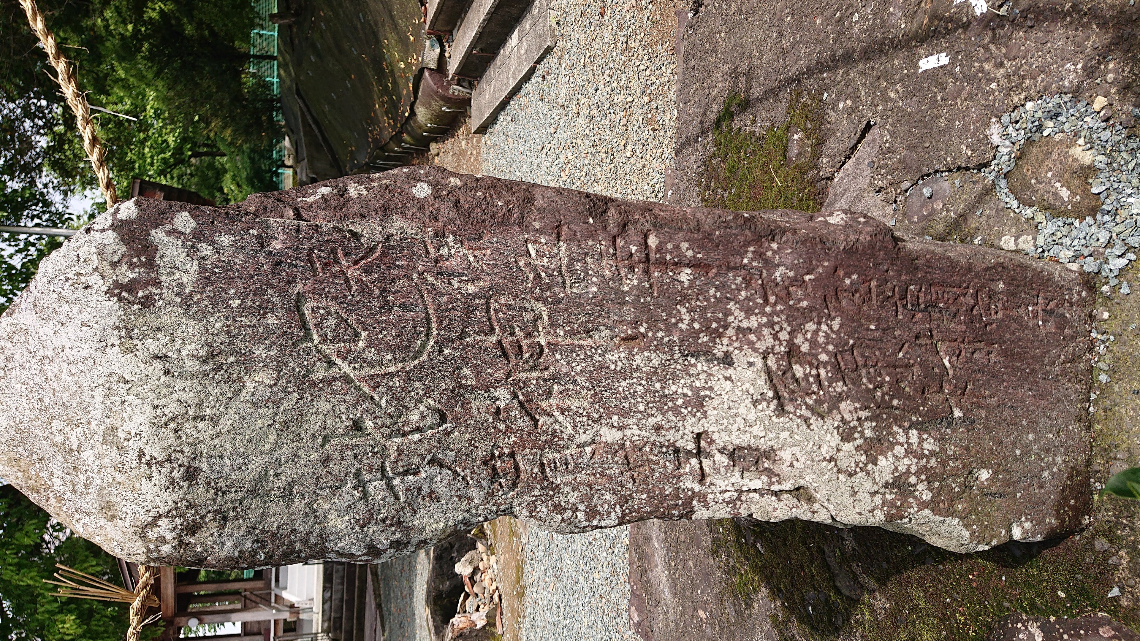 備考:年穂神社境内手前、向かって右側、造立者の名前と「石原村」が下に刻まれている