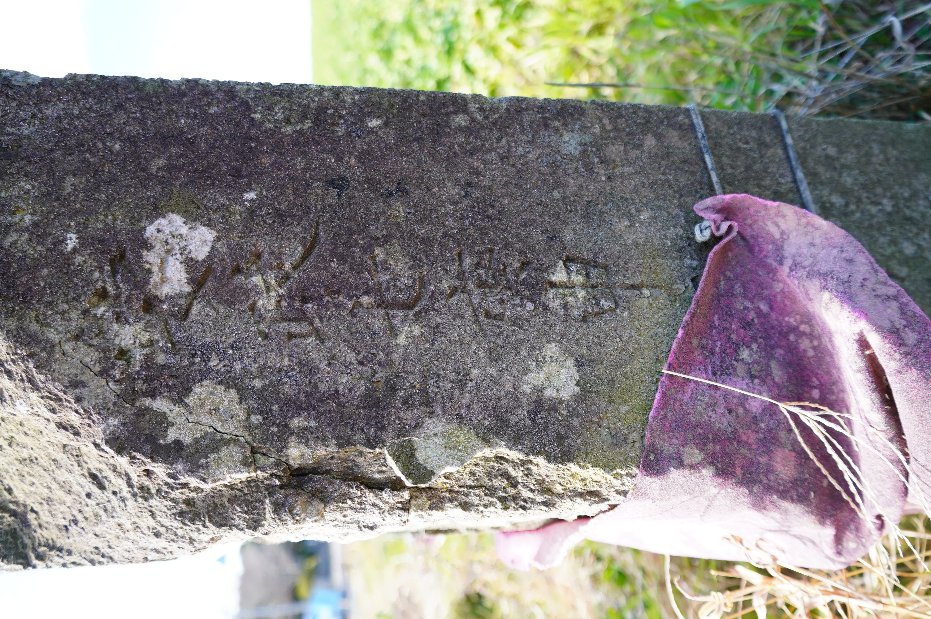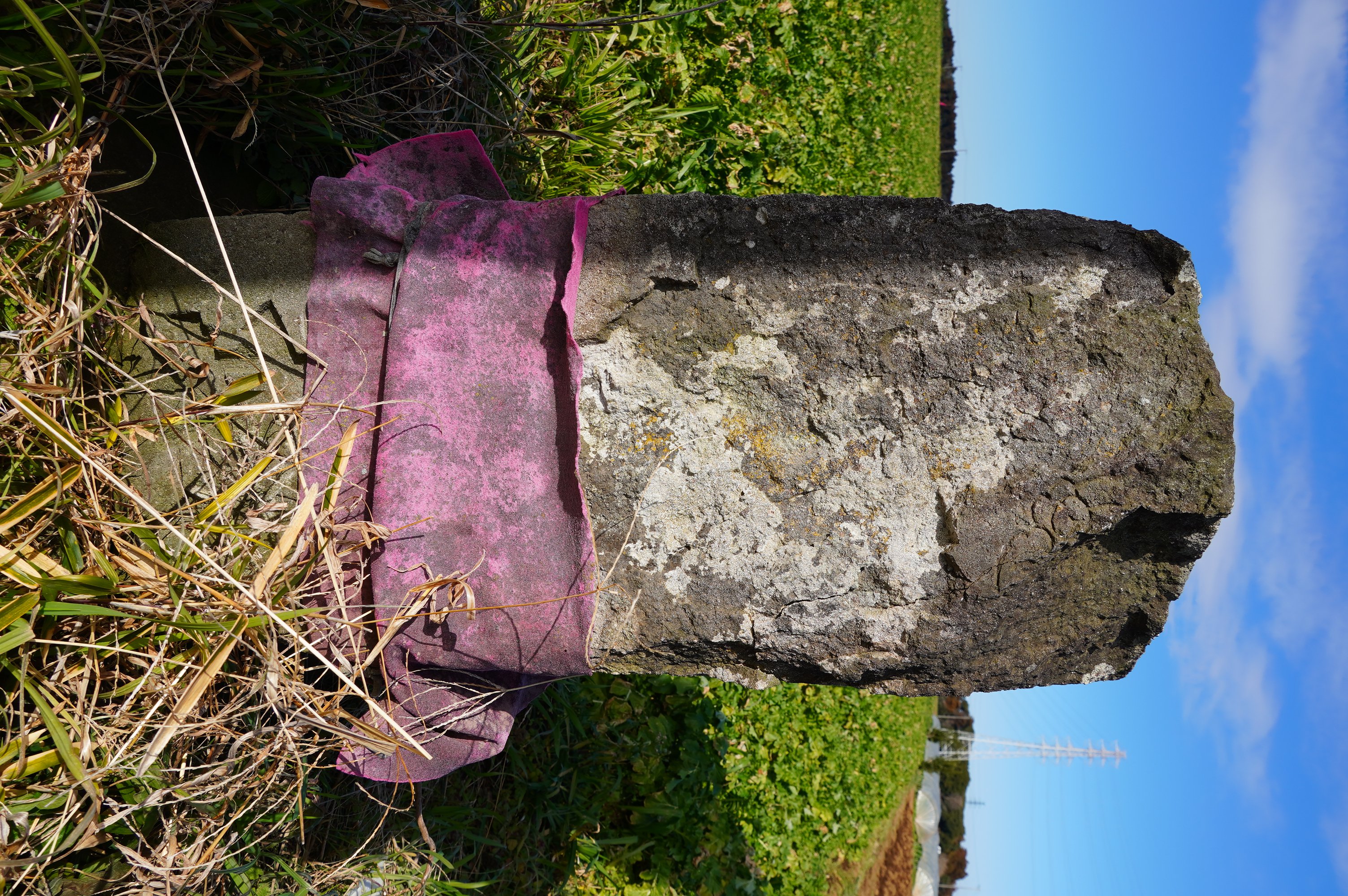 備考:銘文が読み取れないが、庚申塔2基と並んでいること、上部に日月の一部らしいものが見えること、庚申年であることから庚申塔とした。
