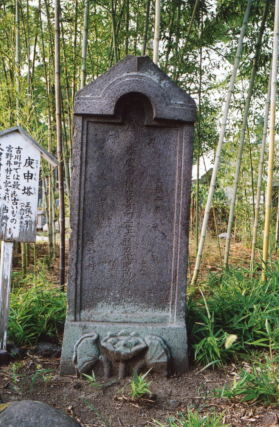 備考:阿弥陀三尊種字 「奉庚申後生善所二世大願成就円満所」銘